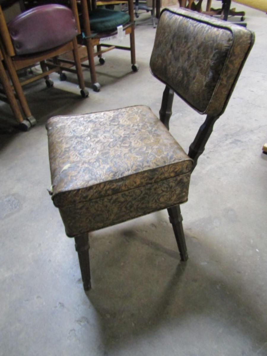 Vintage Vinyl and Wood Sewing Chair with Storage