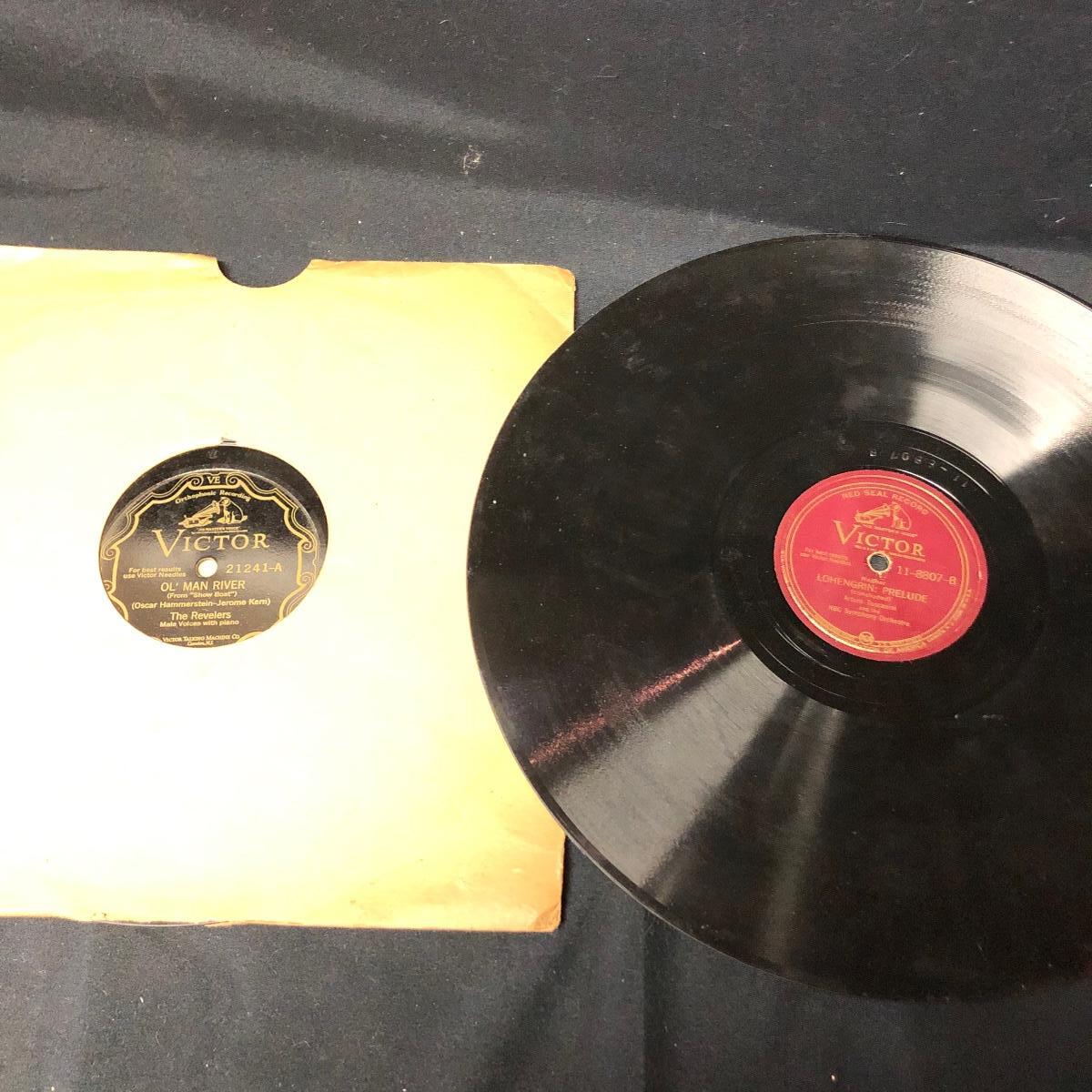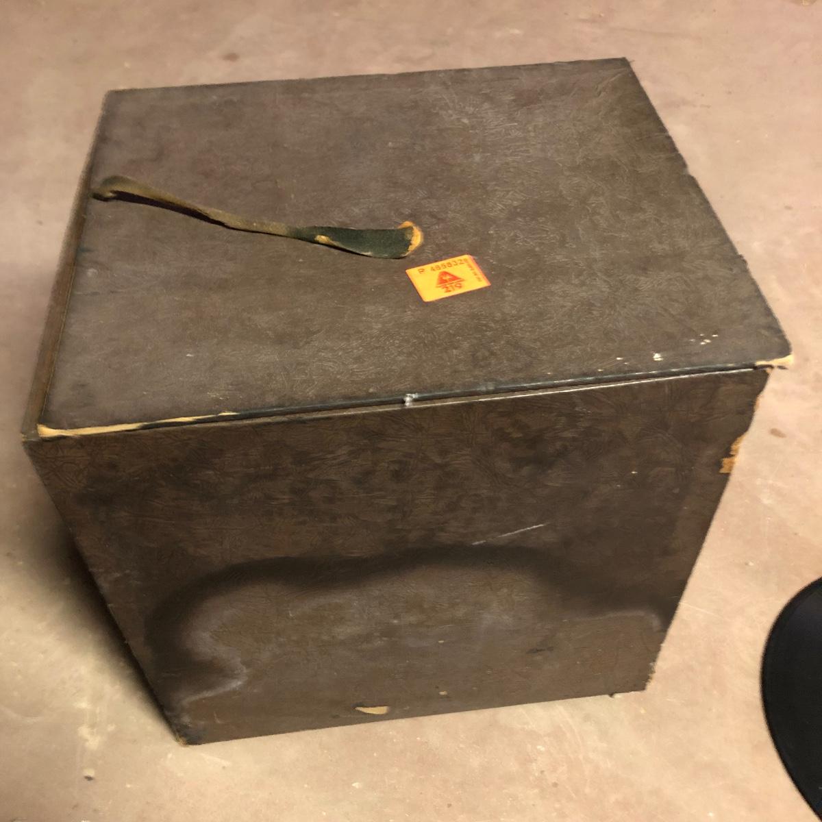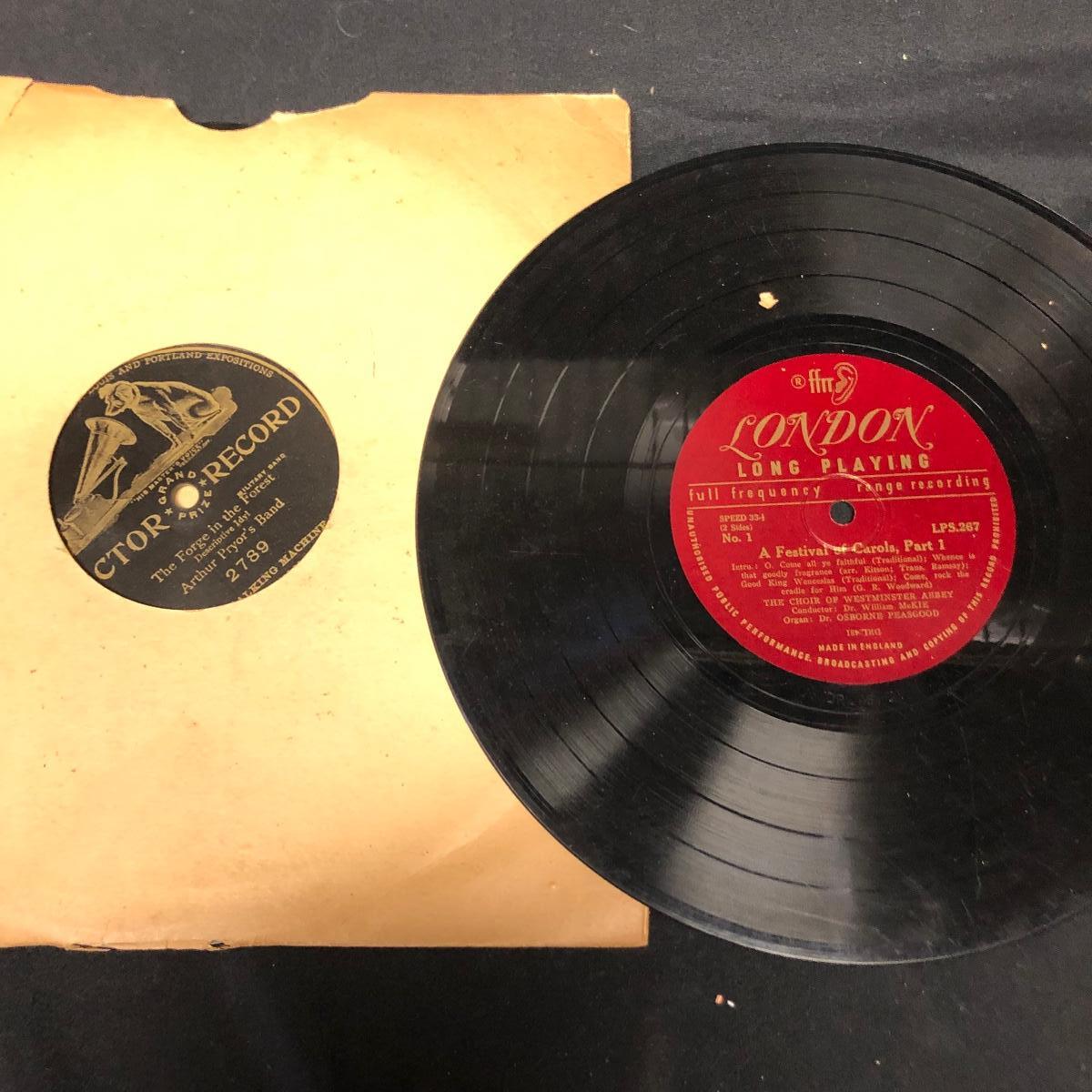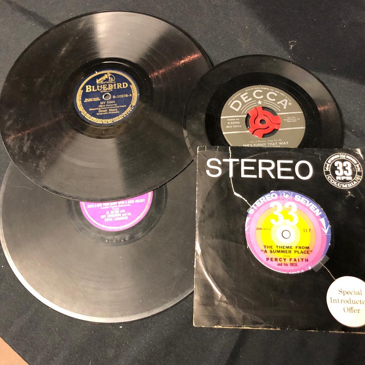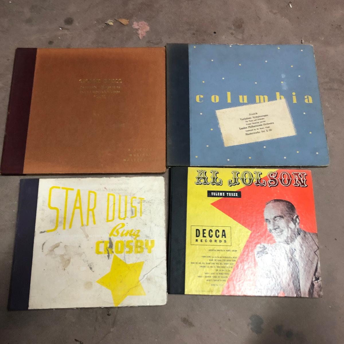 Lot contains a collection of vintage vinyl including Mantovani, Al Jolson, Fred Astaire, Percy Faith and more. Also includes a vintage record box.
