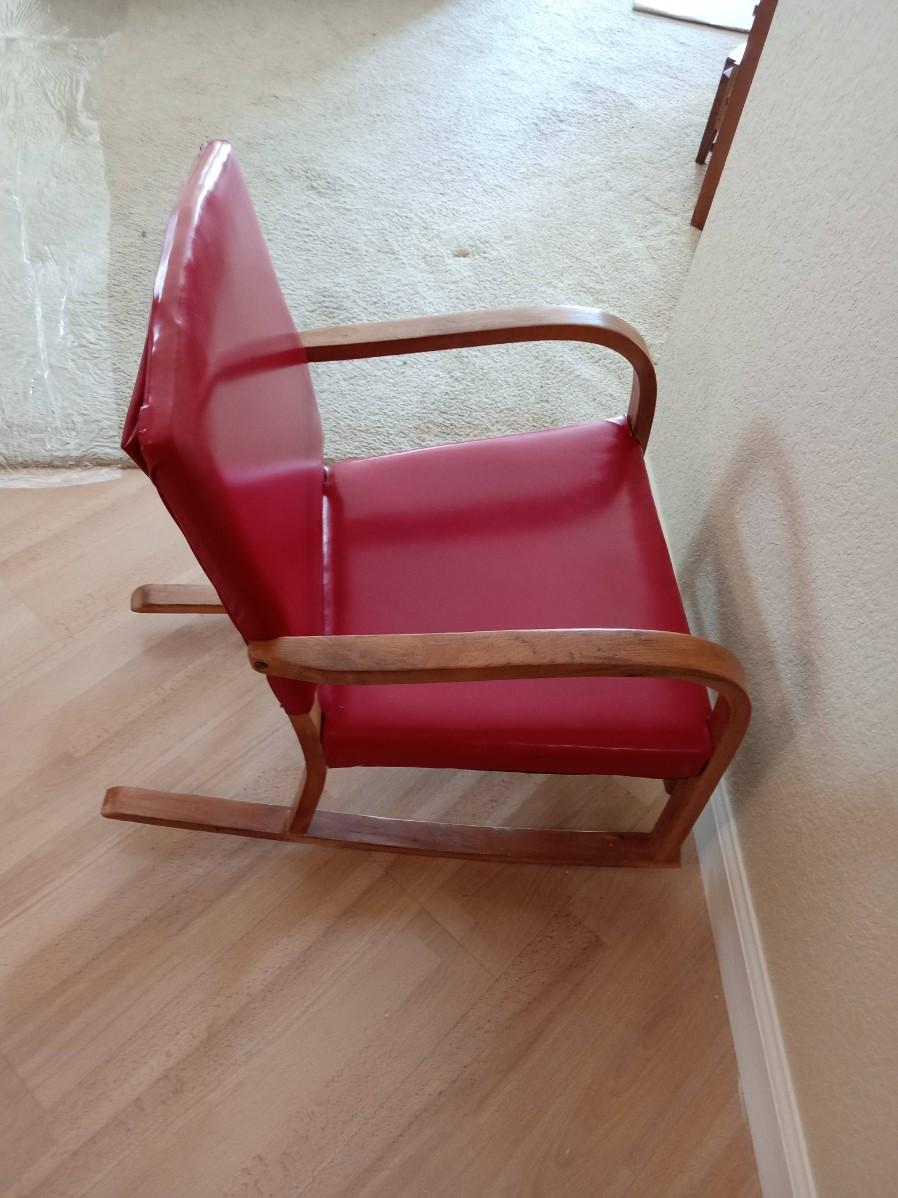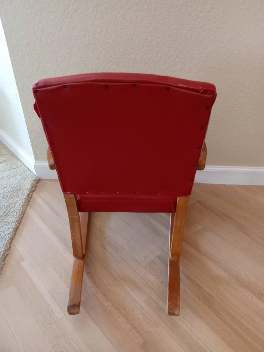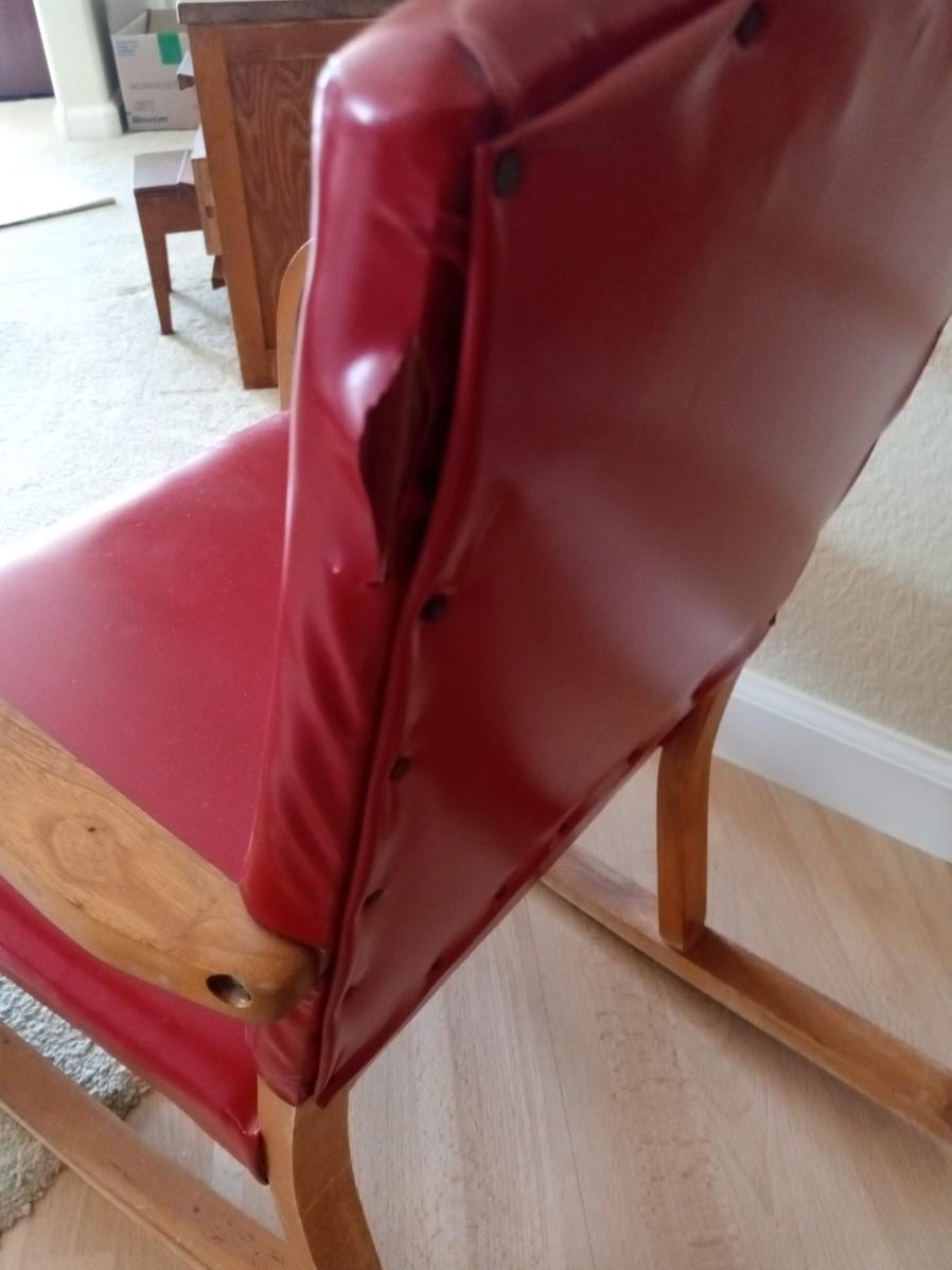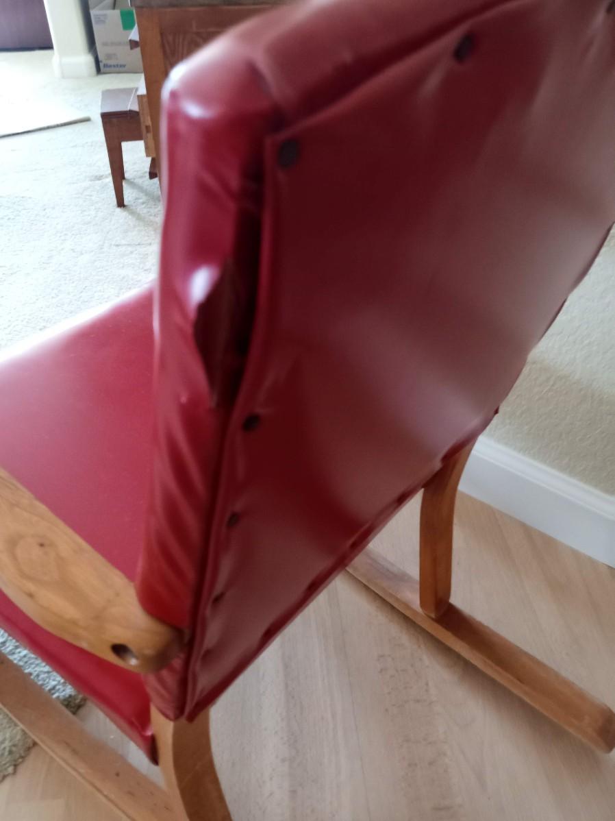 THE VINYL ON THE BACK IS MISSING 1 TACK AND THERE IS A SMALL TEAR TO THE SIDE OF THE BACK REST (SEE PICS)