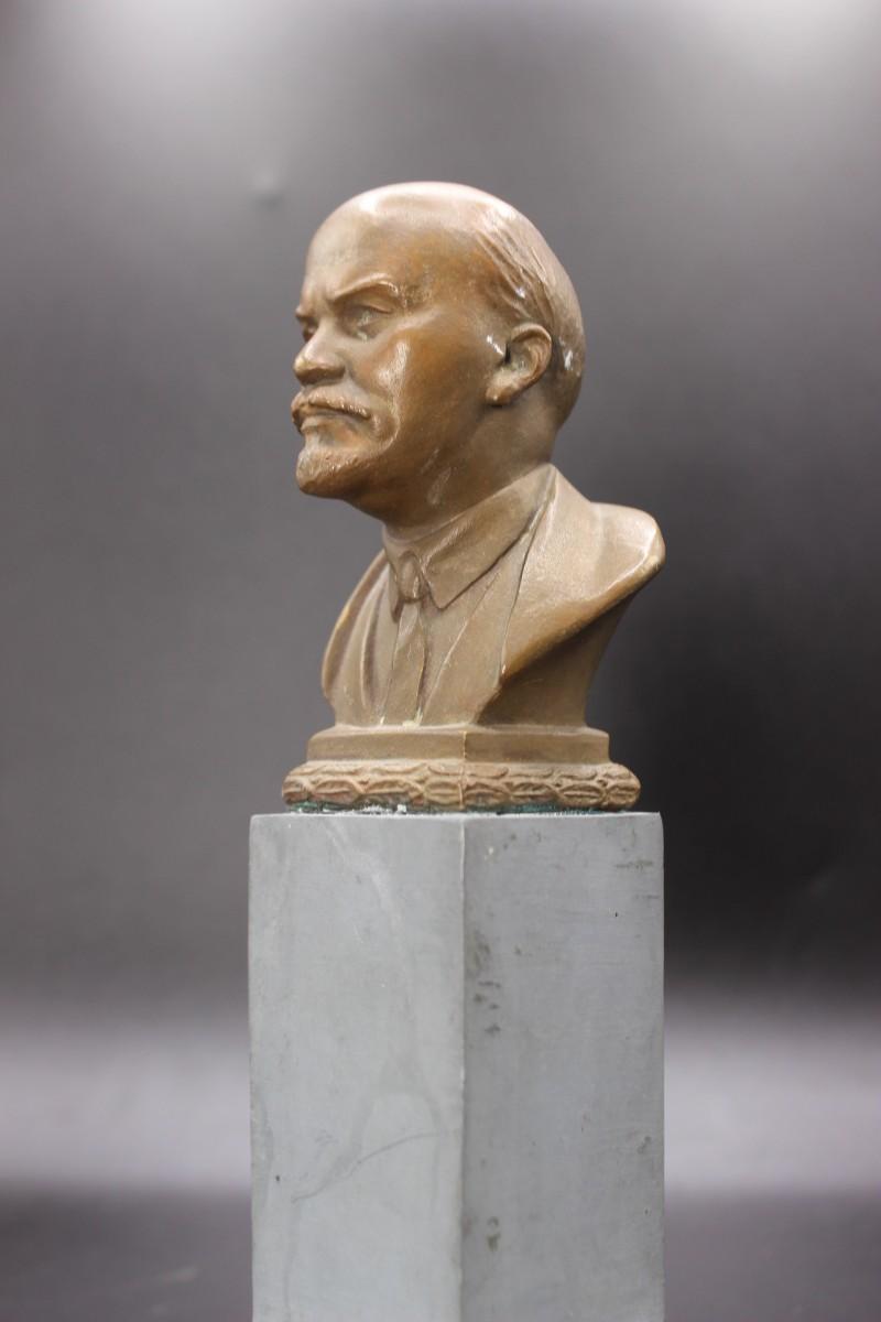 Vintage Small Bronze Vladimir Lenin on Metal Base Figurine Bust