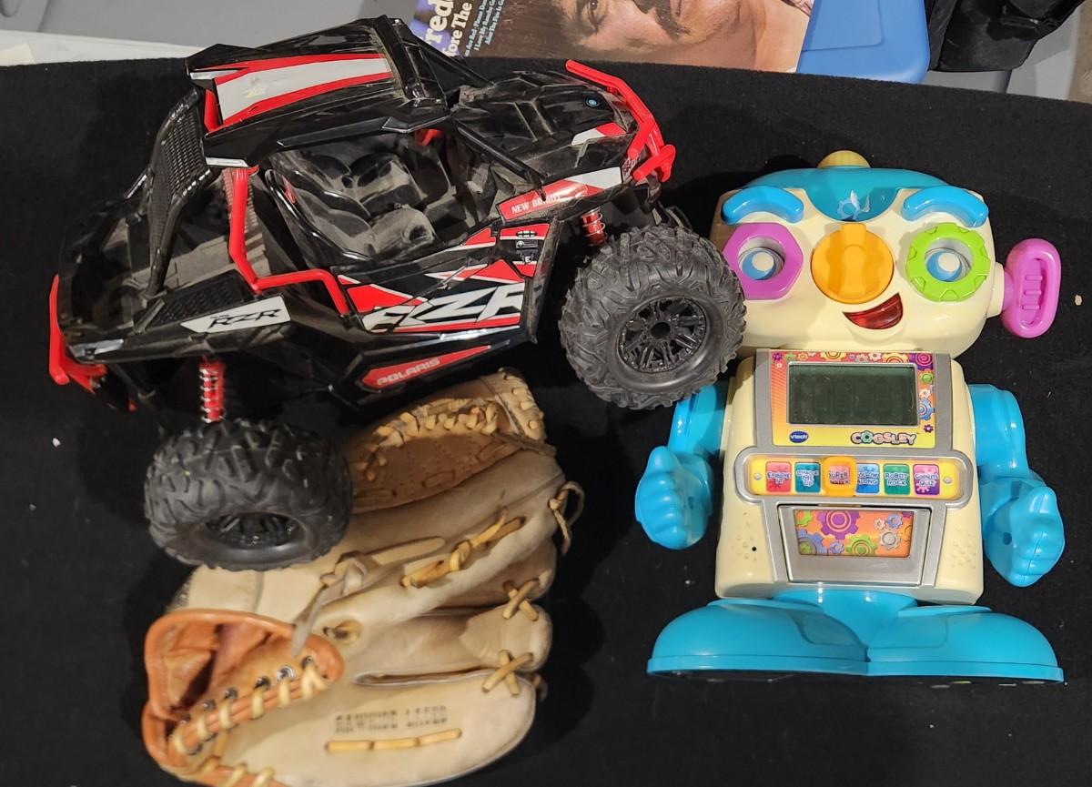 Vintage VTech COGSLEY Interactive Learning Robot Tested Working & Polaris Razr toy & Baseball Glove