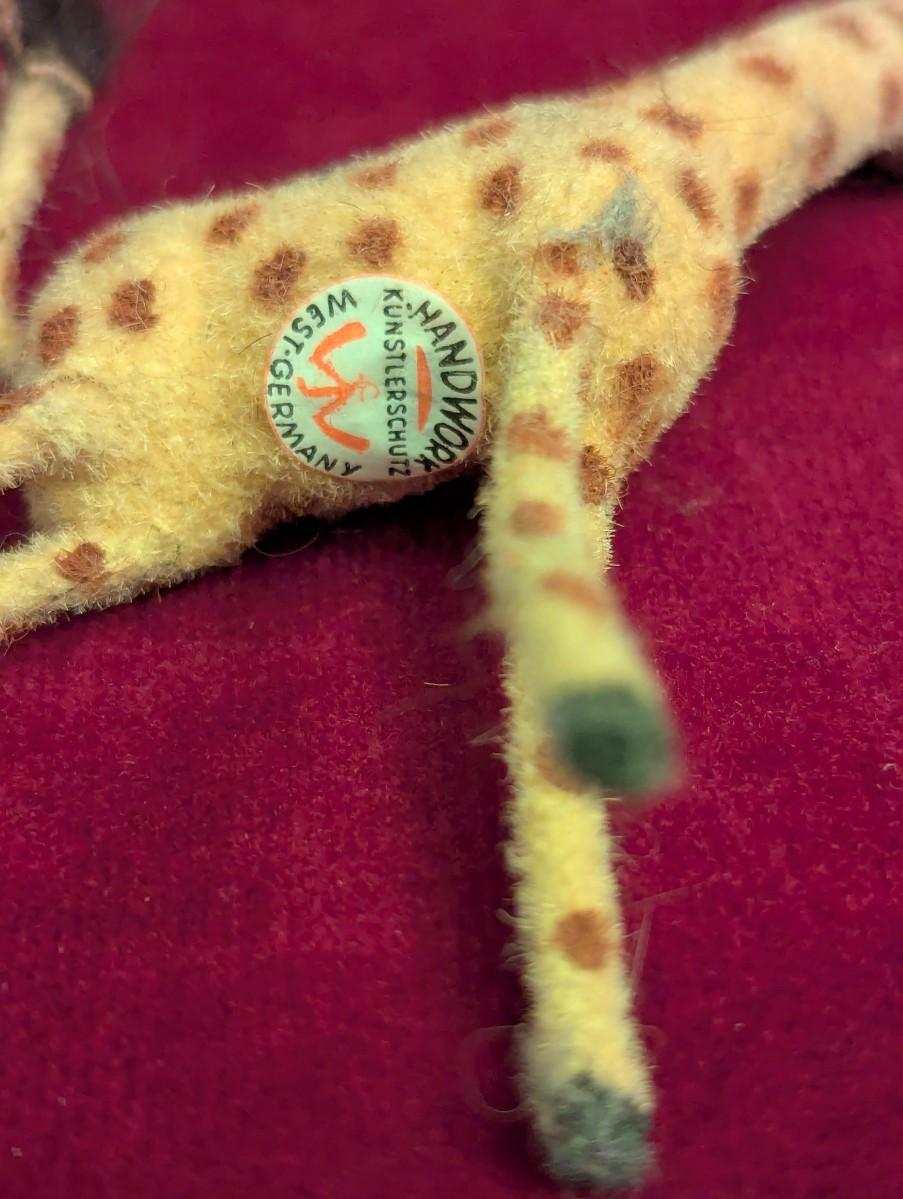 Vintage Wagner Kunstlerschutz Flocked Giraffe Figure Handwork West Germany #88