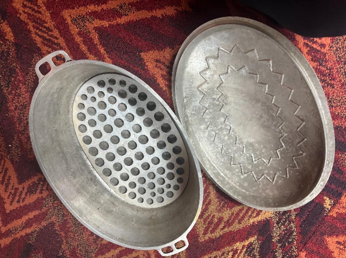 Vintage Wagner Ware Magnalite Oval Roaster Dutch Oven (4265) - 8 Qt Cast Aluminum with Lid & Perforated Trivet
