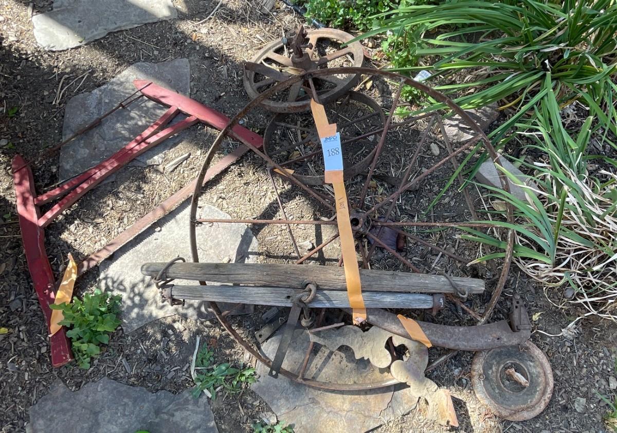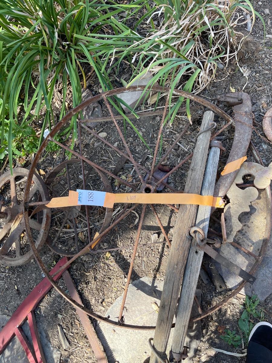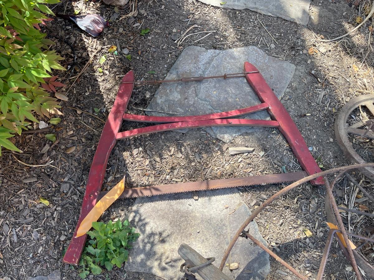 Vintage Wagon Wheels, Bird Feeder, Vintage Cross Cut Buck Saw