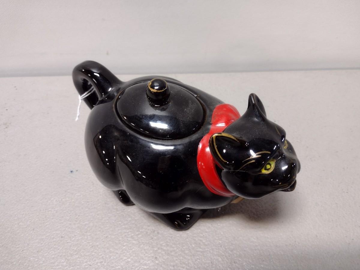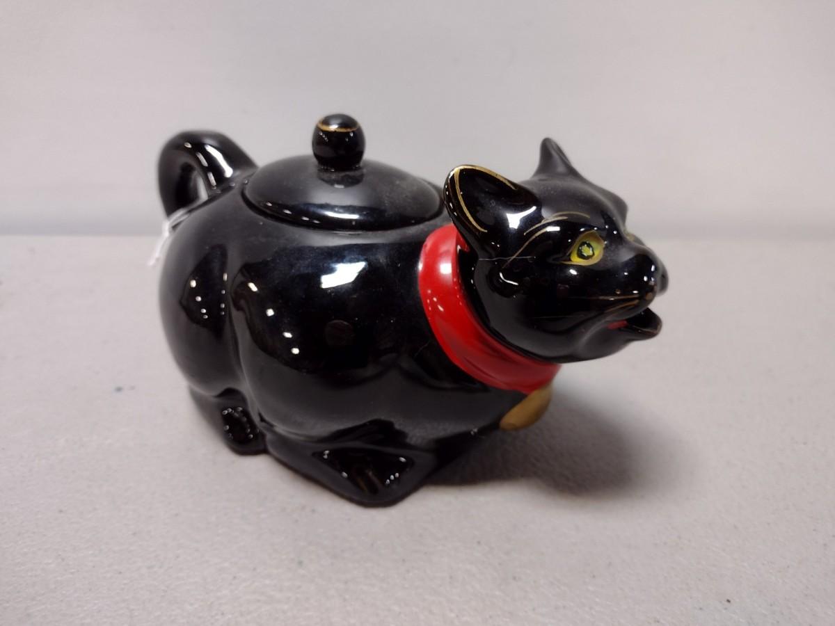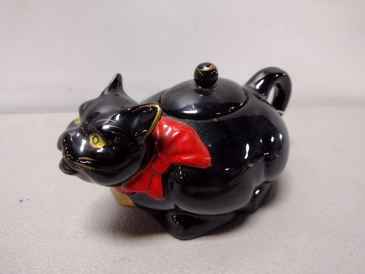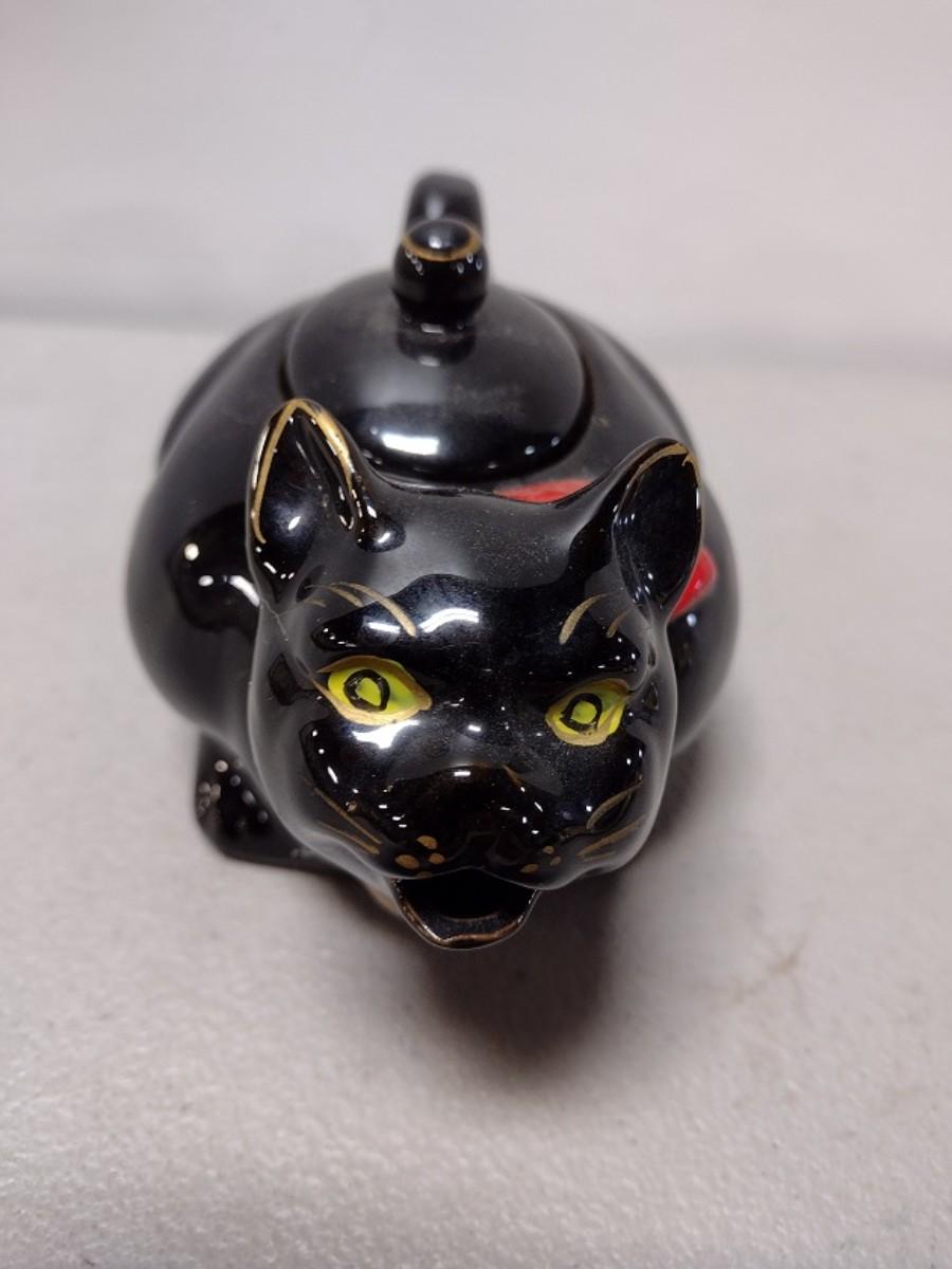 Vintage Wales Japanese Porcelain Black Cat Tea Pot