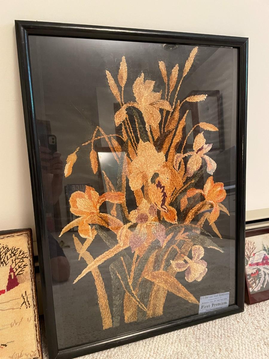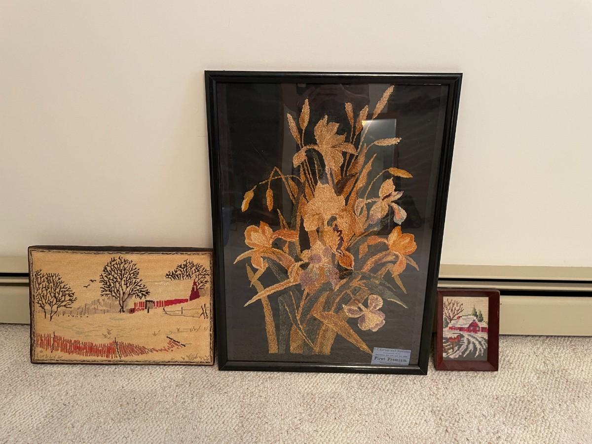 Needlepoint items included in this lot. 21w x 29h