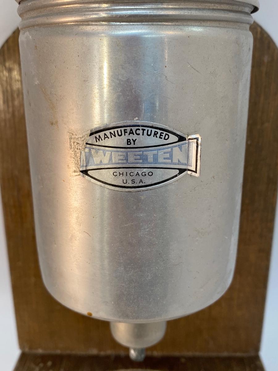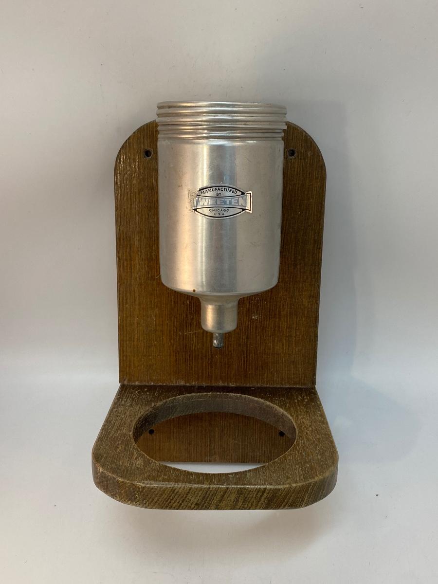 Vintage Wall Hanging Billiards Pool Table Powdered Chalk Talc Dispenser. Missing the small catch bowl. Still has some chalk inside. Label on the front has wear on one side.