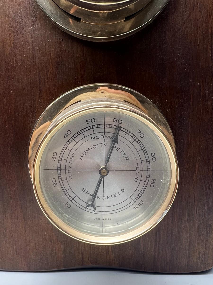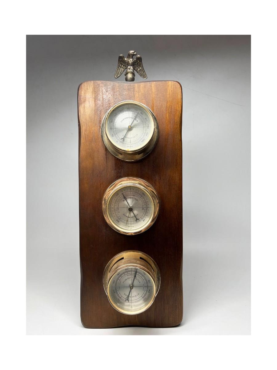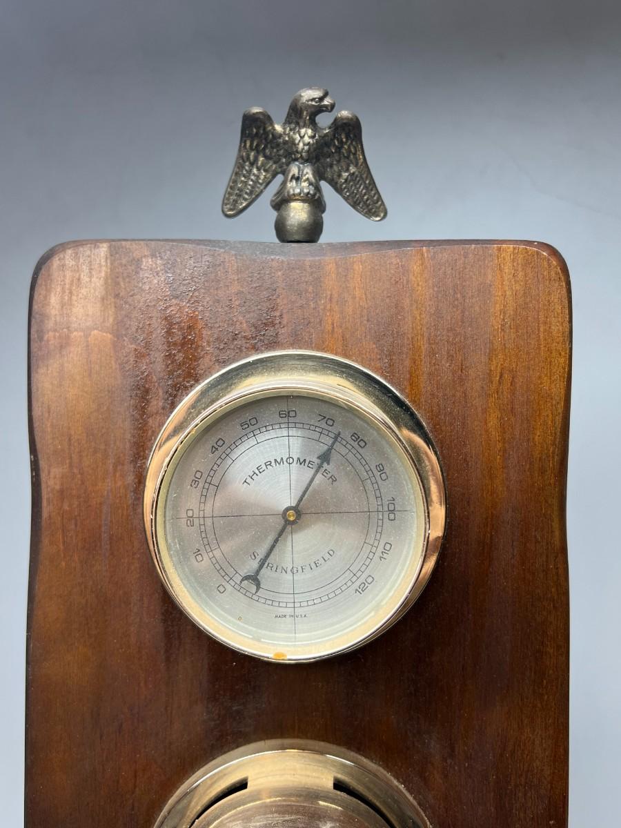 Vintage Wall Hanging Wood Barometer Thermometer Pressure Gauge