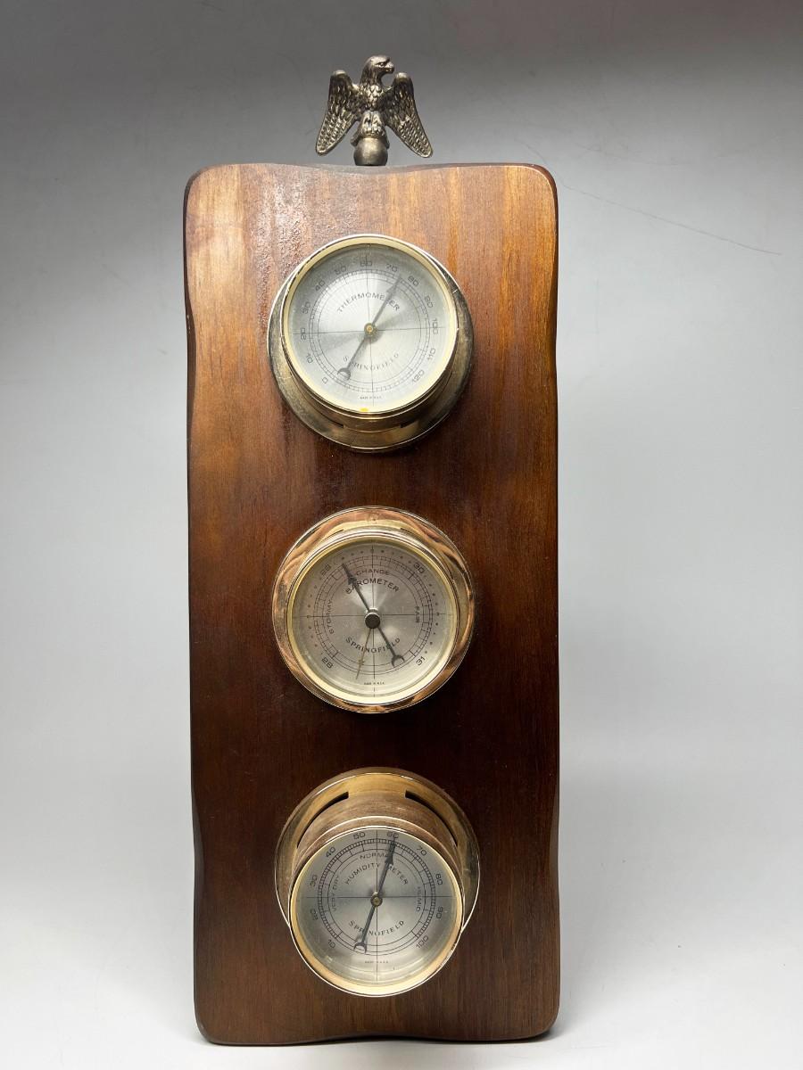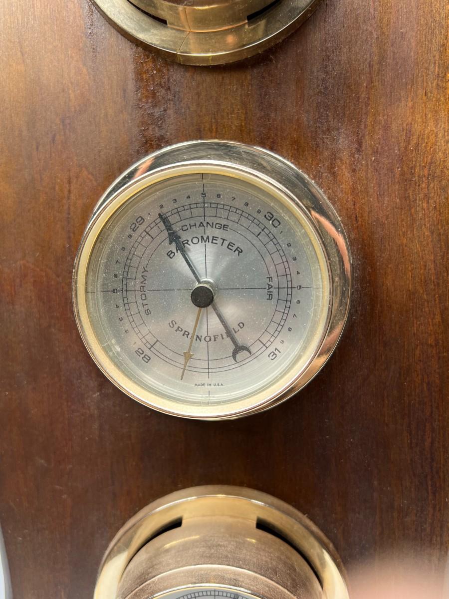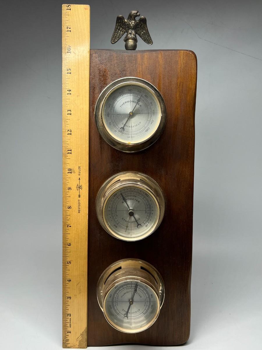 Vintage Wall Hanging Wood Barometer Thermometer Pressure Gauge