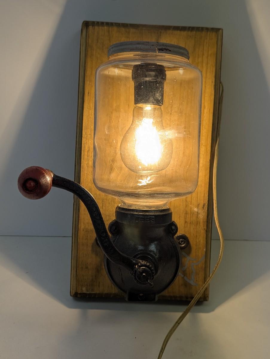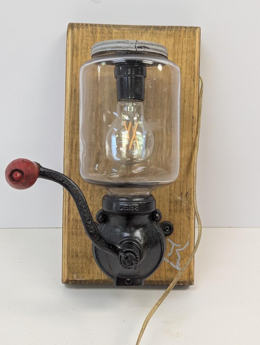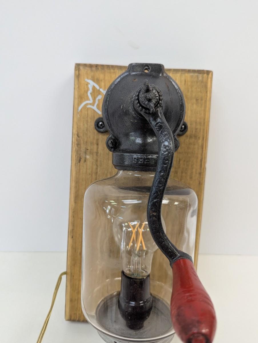Vintage Wall Mount Coffee Grinder Lamp Worked!