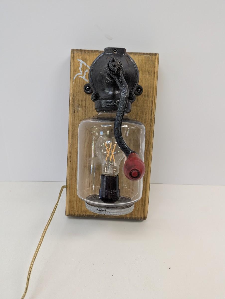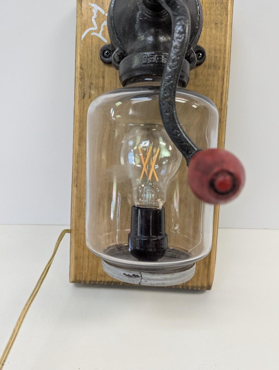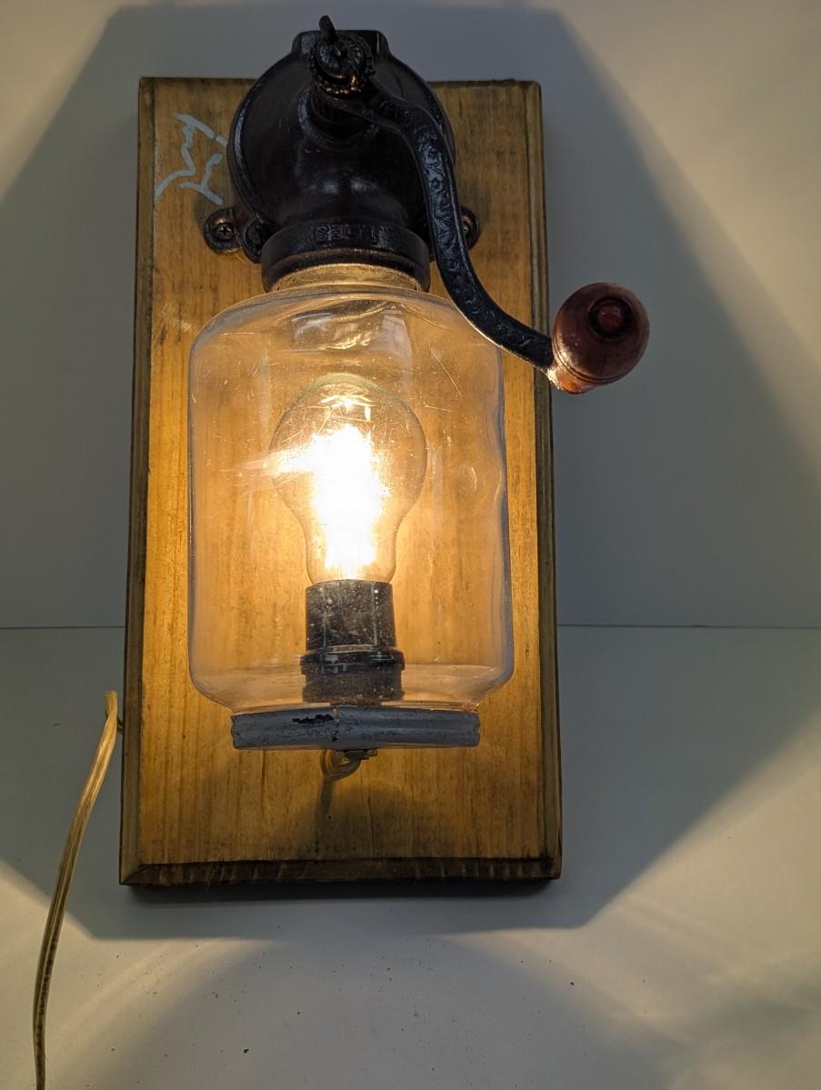 Vintage Wall Mount Coffee Grinder Lamp Worked!