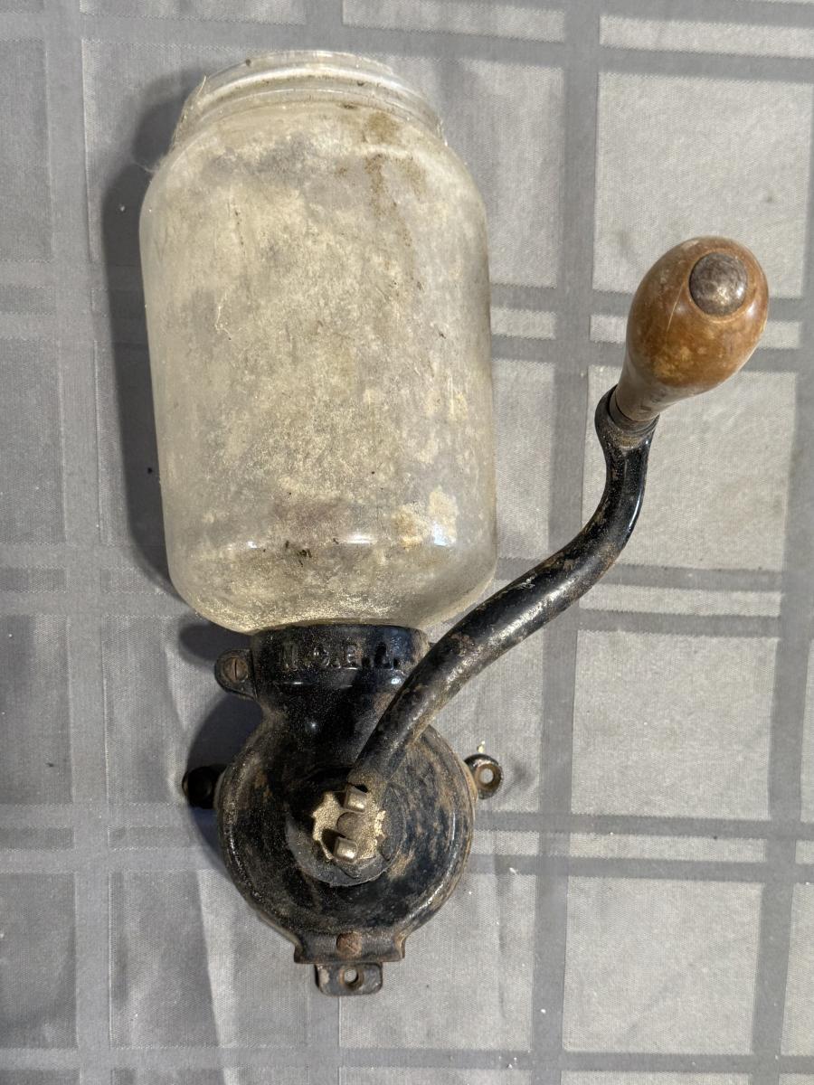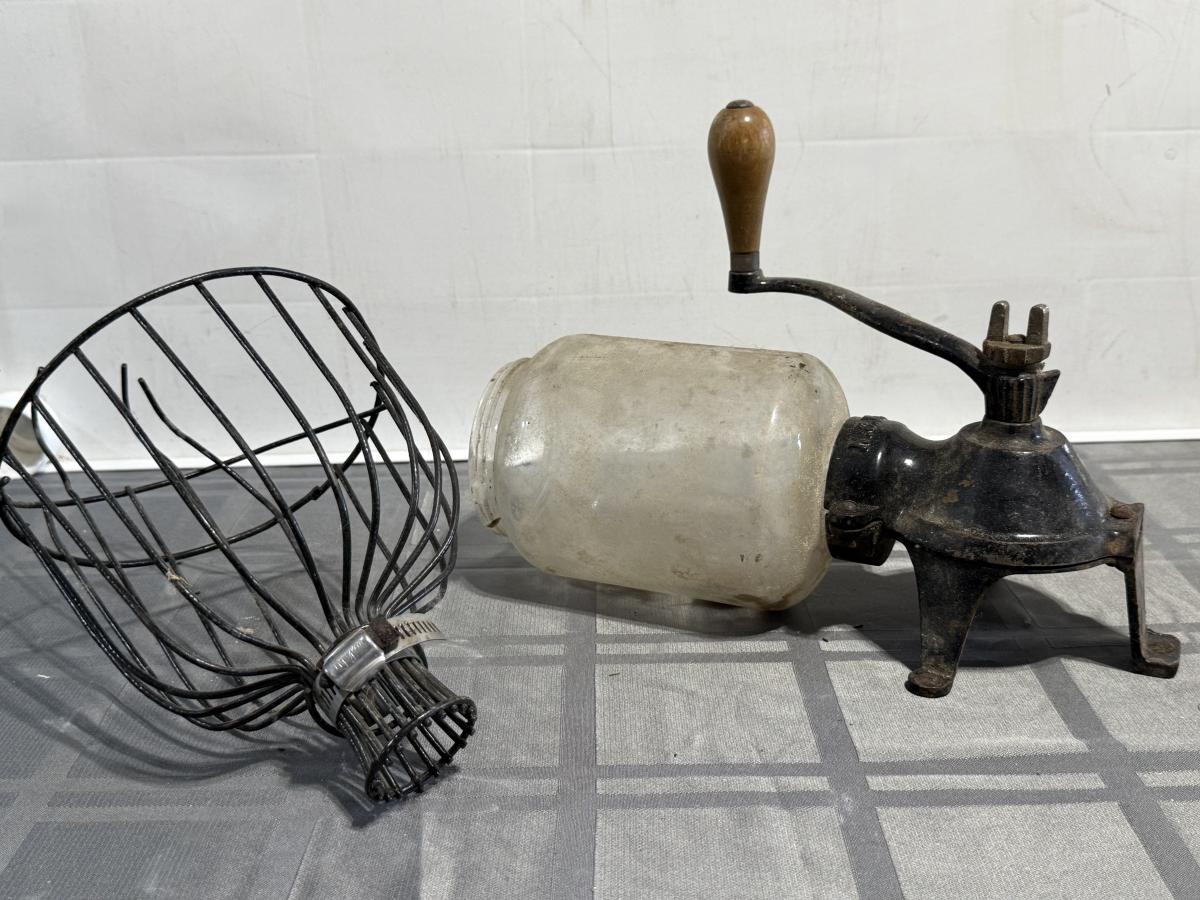 Vintage Wall mounted Coffee Grinder & apple picker basket (no handle)