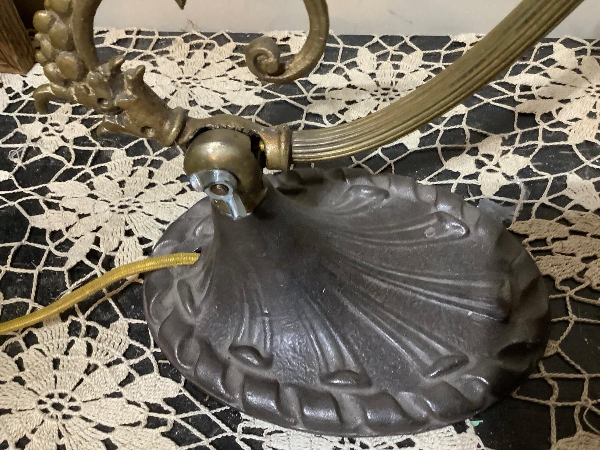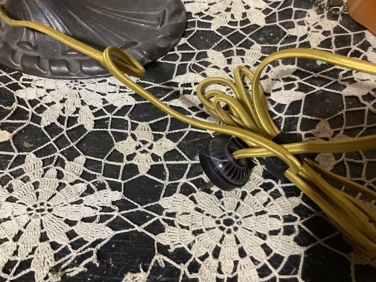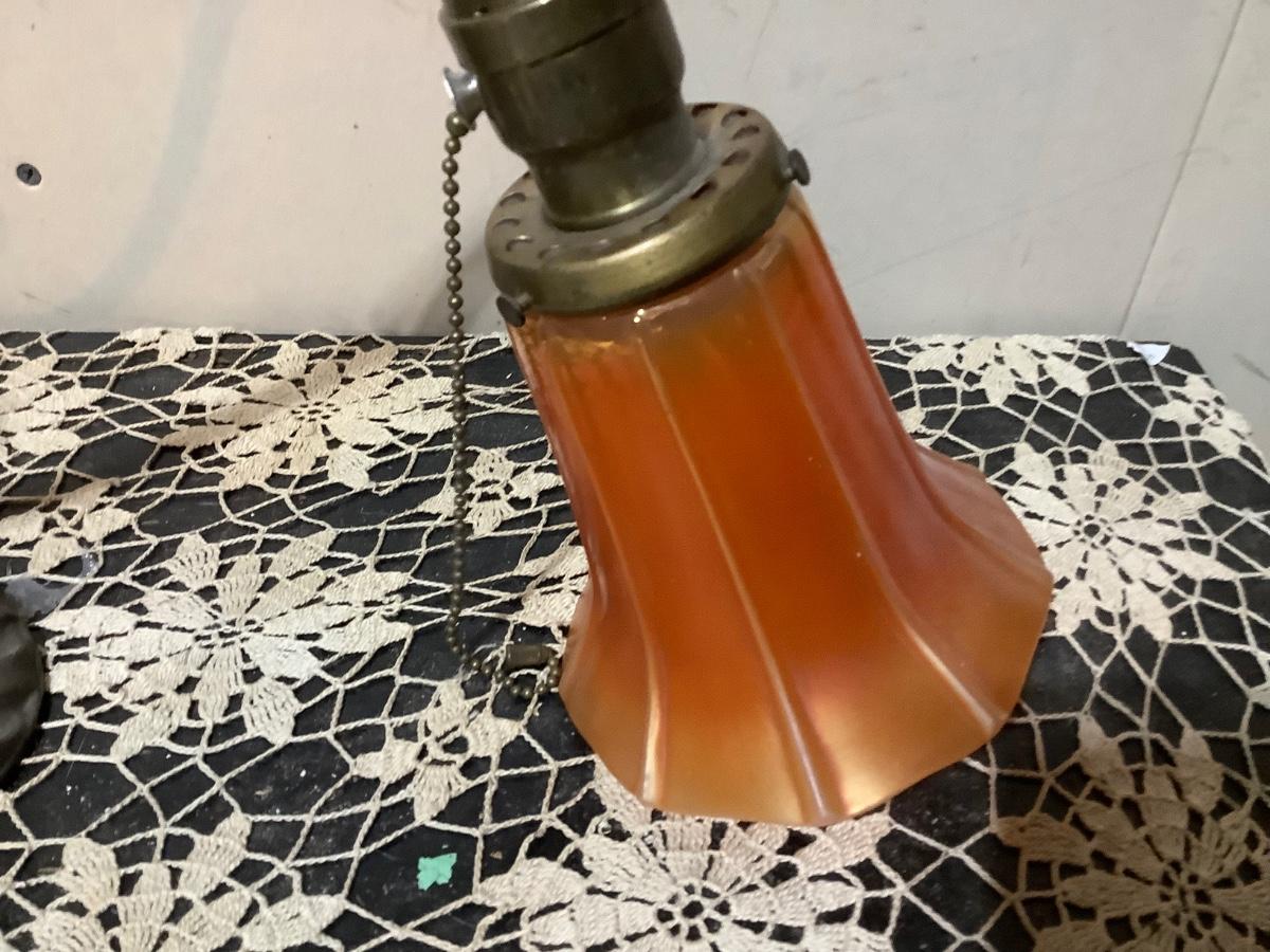 This is a great adjustable wall or table lamp. It has a very nice carnival lamp shade. This has a vintage cord but in really good condition.