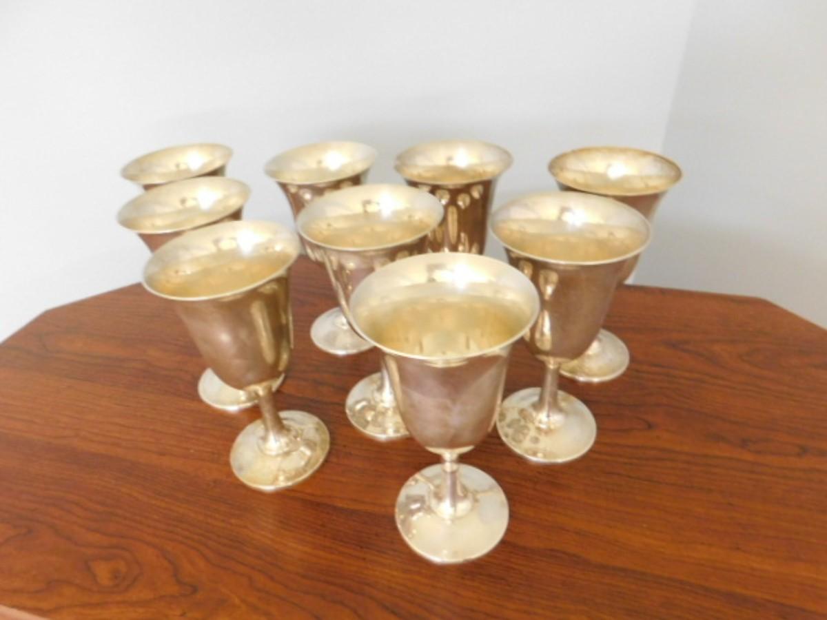 Vintage Wallace Sterling Silver Footed Wine Cups 9 Ct.  Approximately 1552 Grams Total