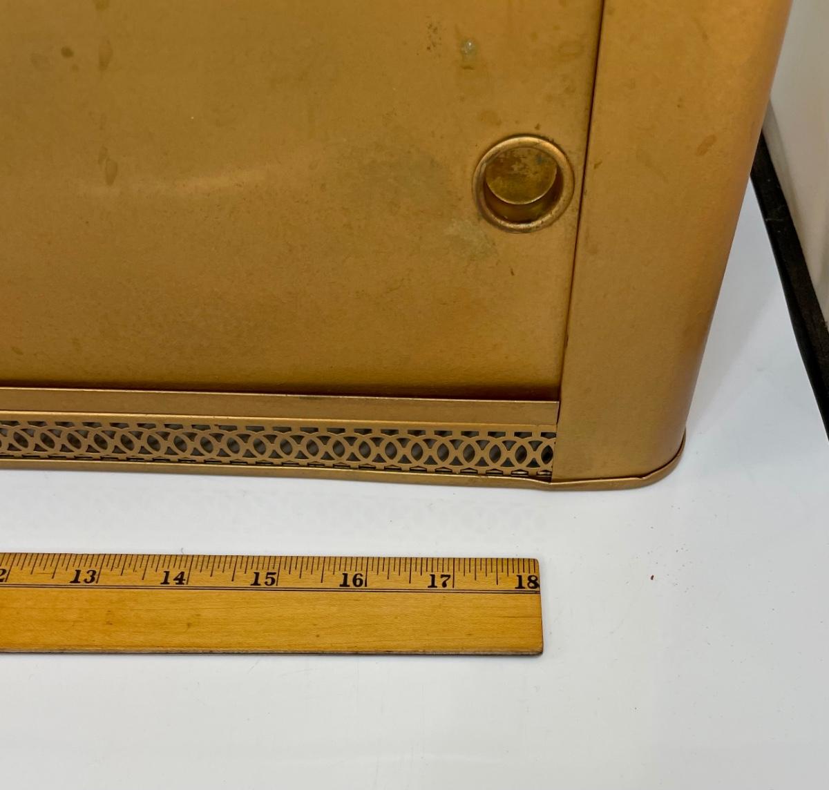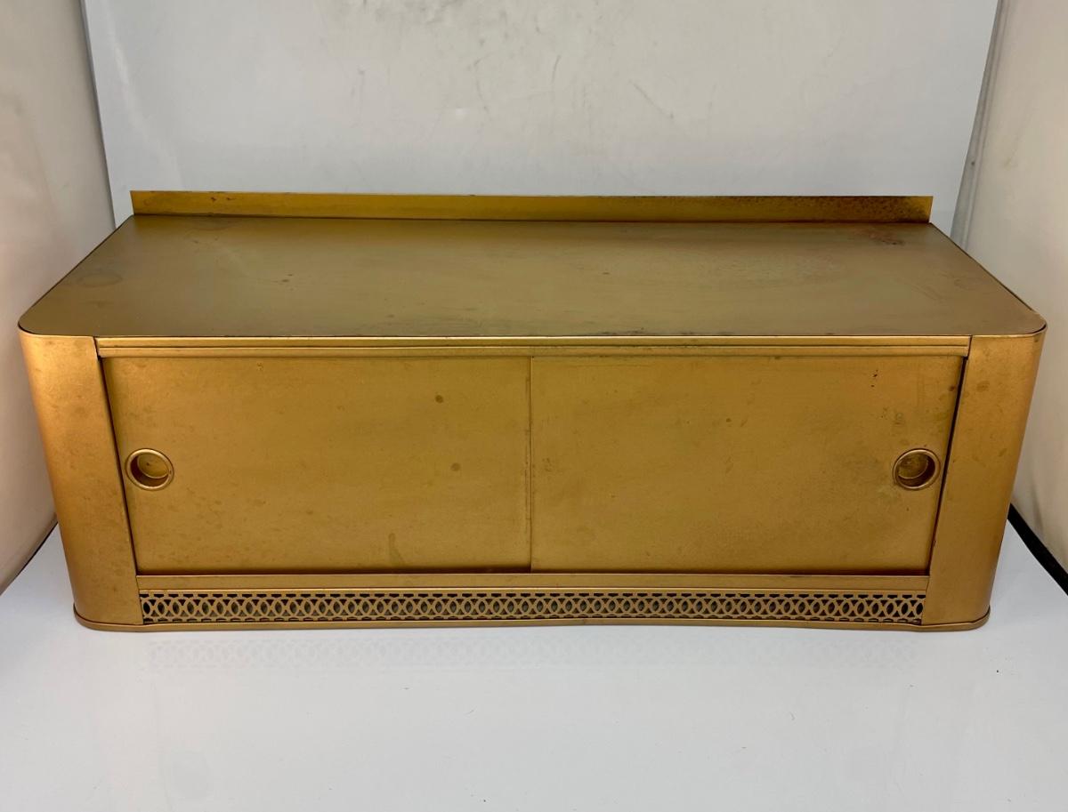 Vintage Metal bathroom organizer cabinet with sliding doors. Fits above toilet tank.