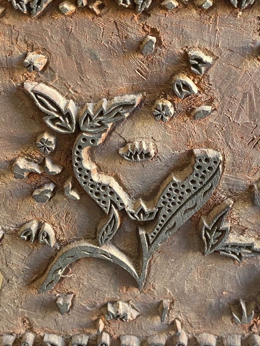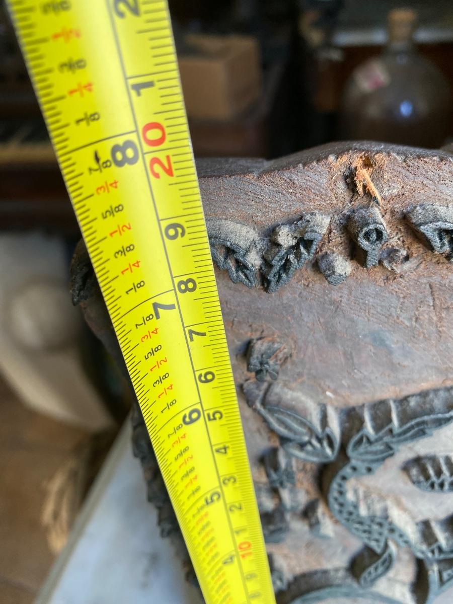vintage wooden wallpaper fabric printing block stamp carved wood, approx 8x6.