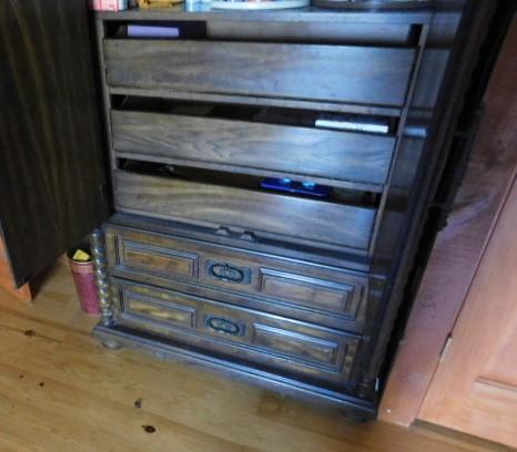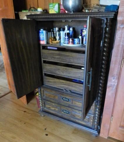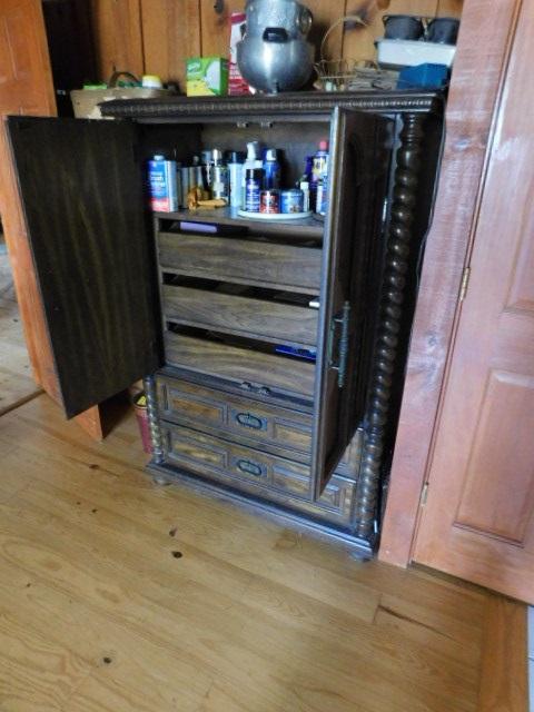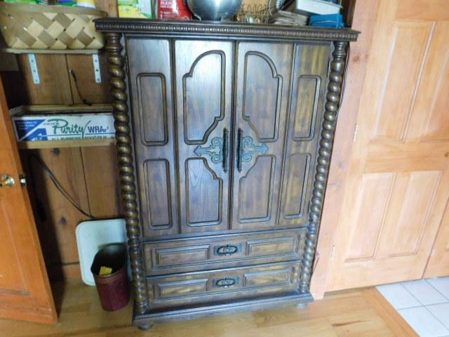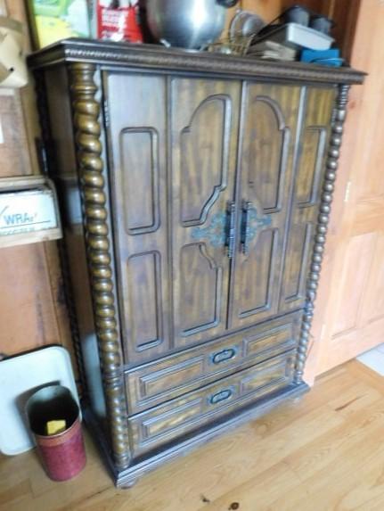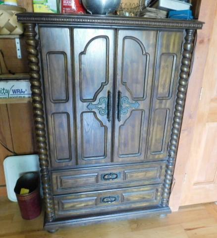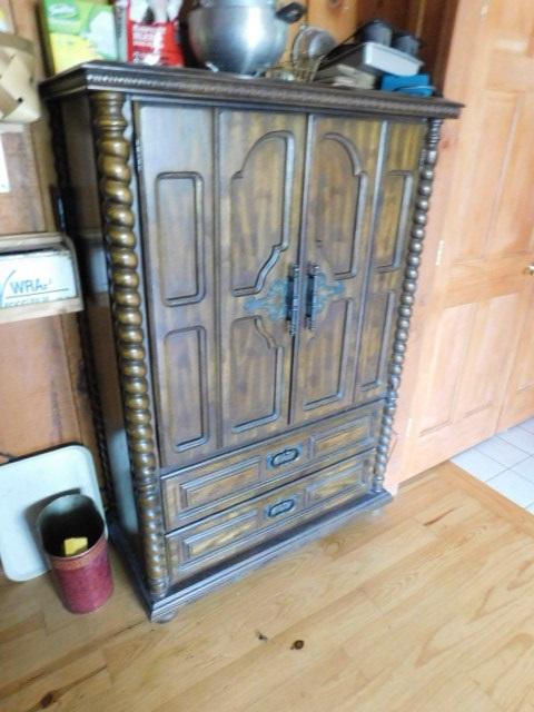 Vintage Walnut Armoire with Wardrobe Drawers nice and solid. Expect some wear and scratches