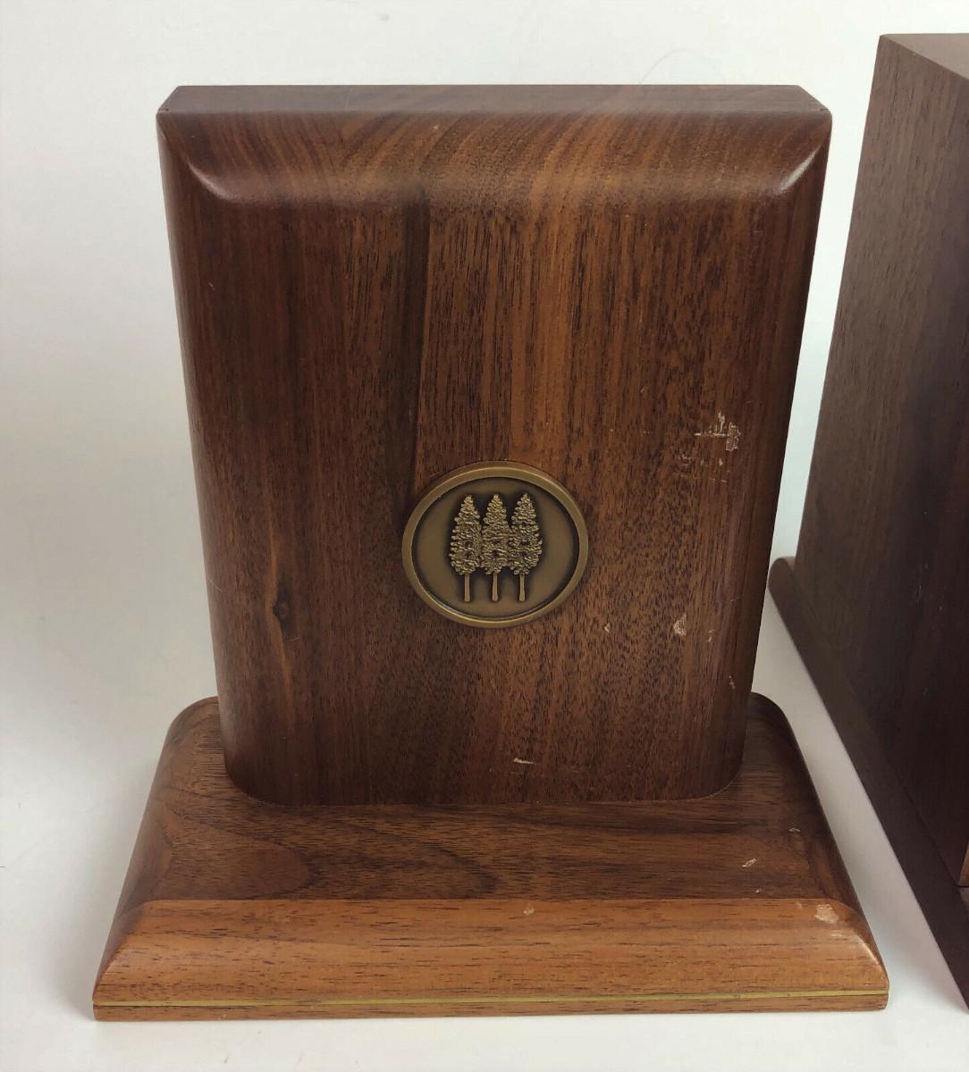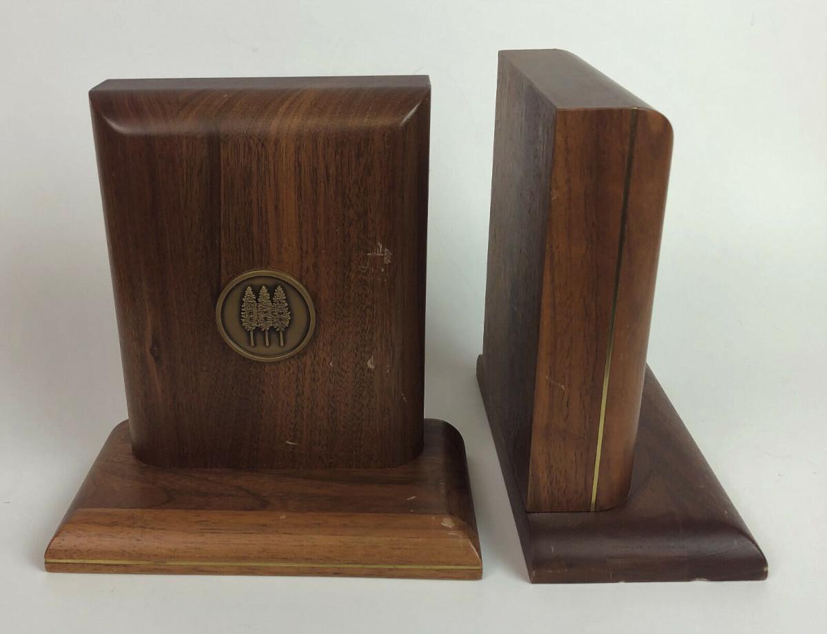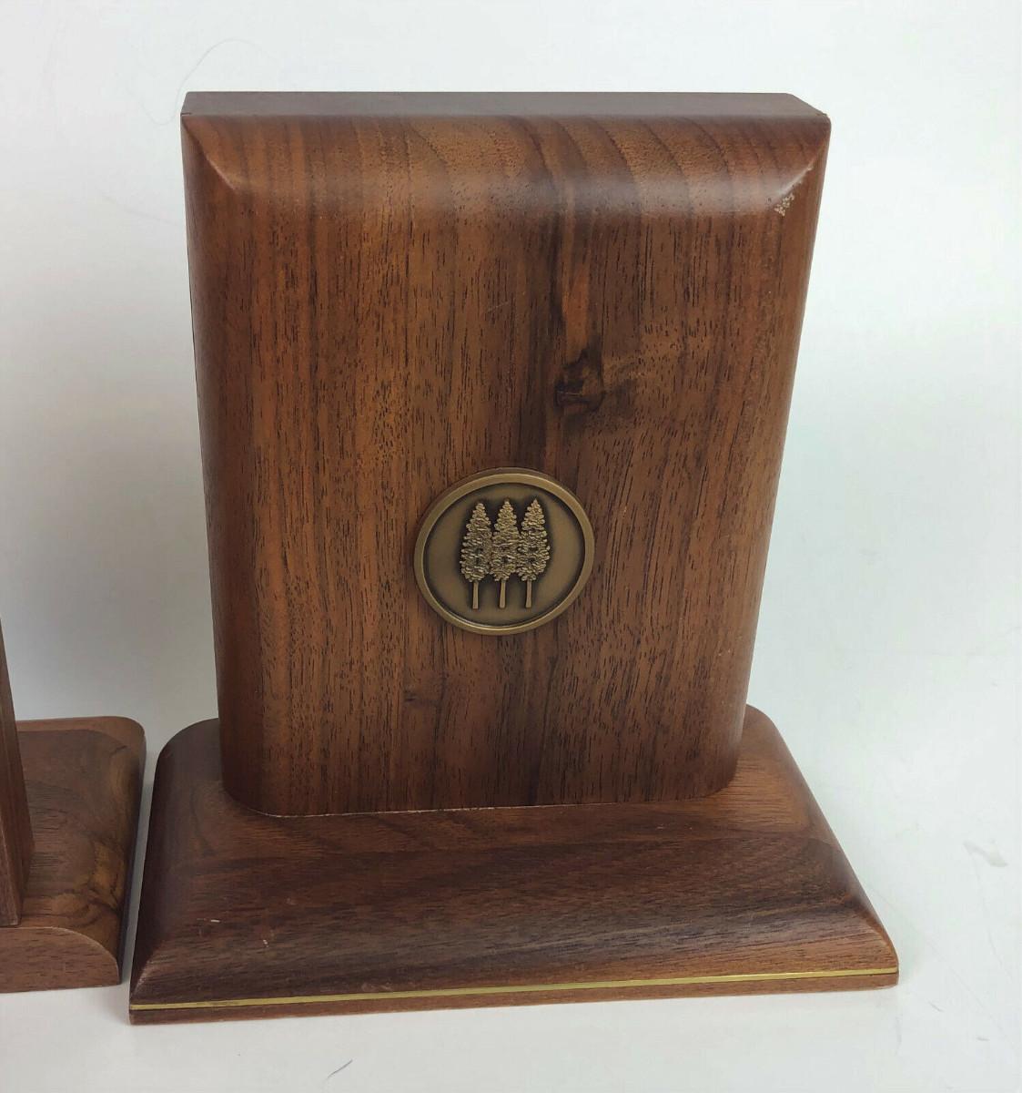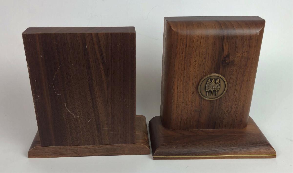 vintage WALNUT BOOKENDS THREE TREE LOGO