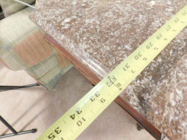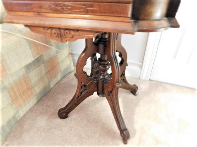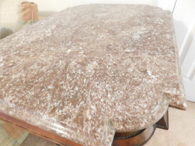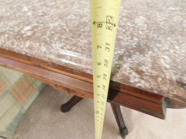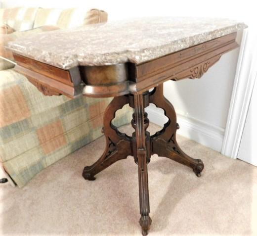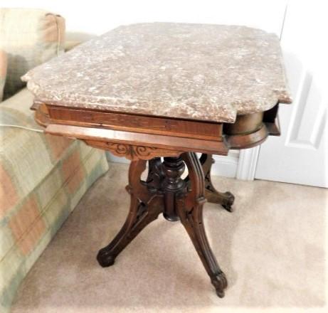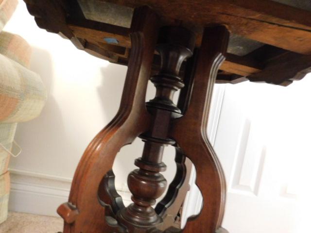 Vintage Walnut Eastlake Accent Table with Earth Tone Marble Top ---downstairs item