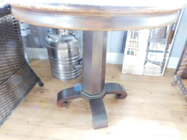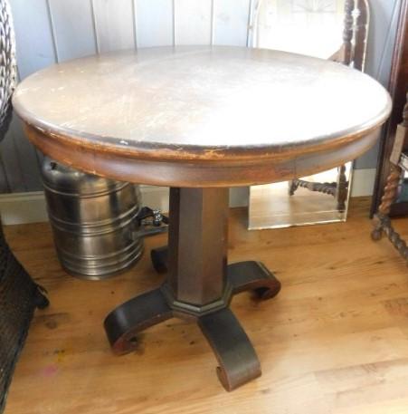Vintage Walnut Empire Post Round Table 28"x28" has scratches and wear to the finish