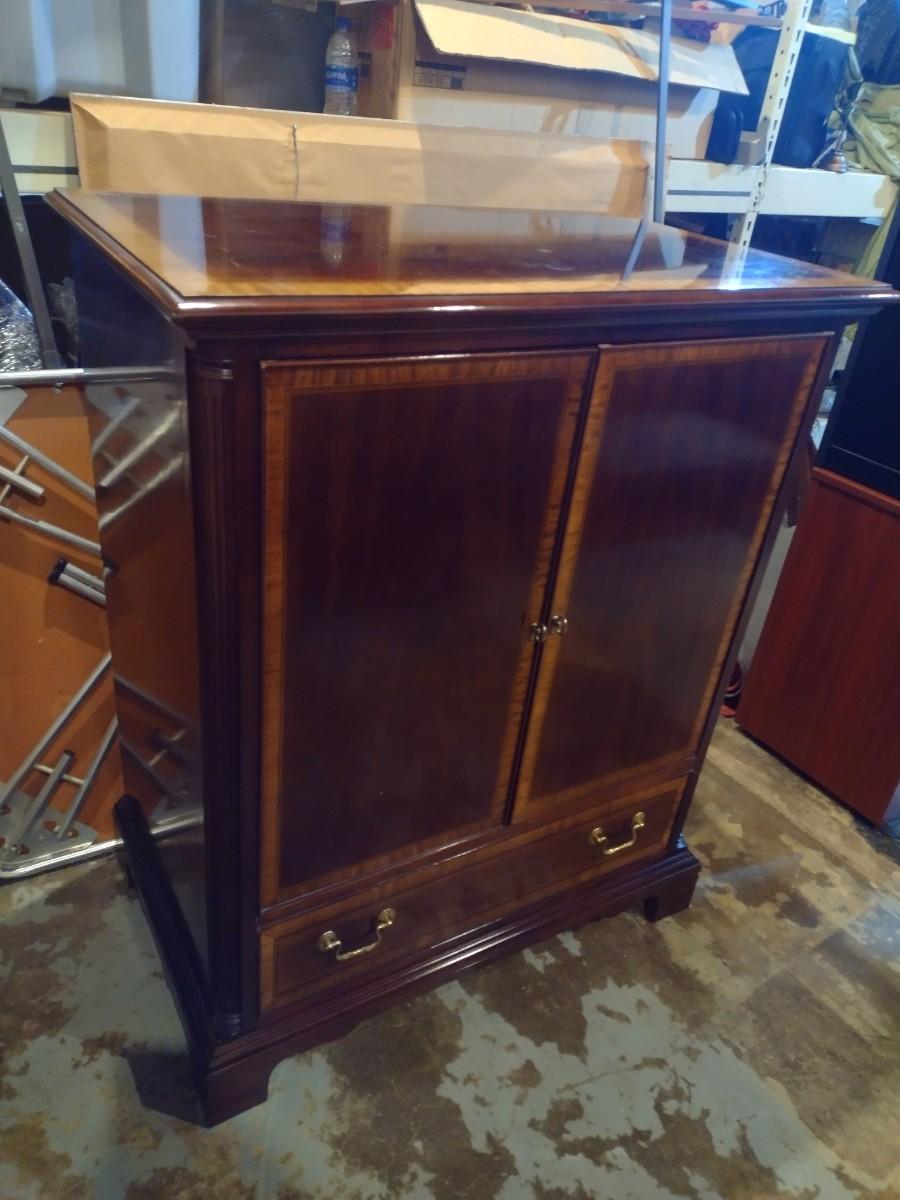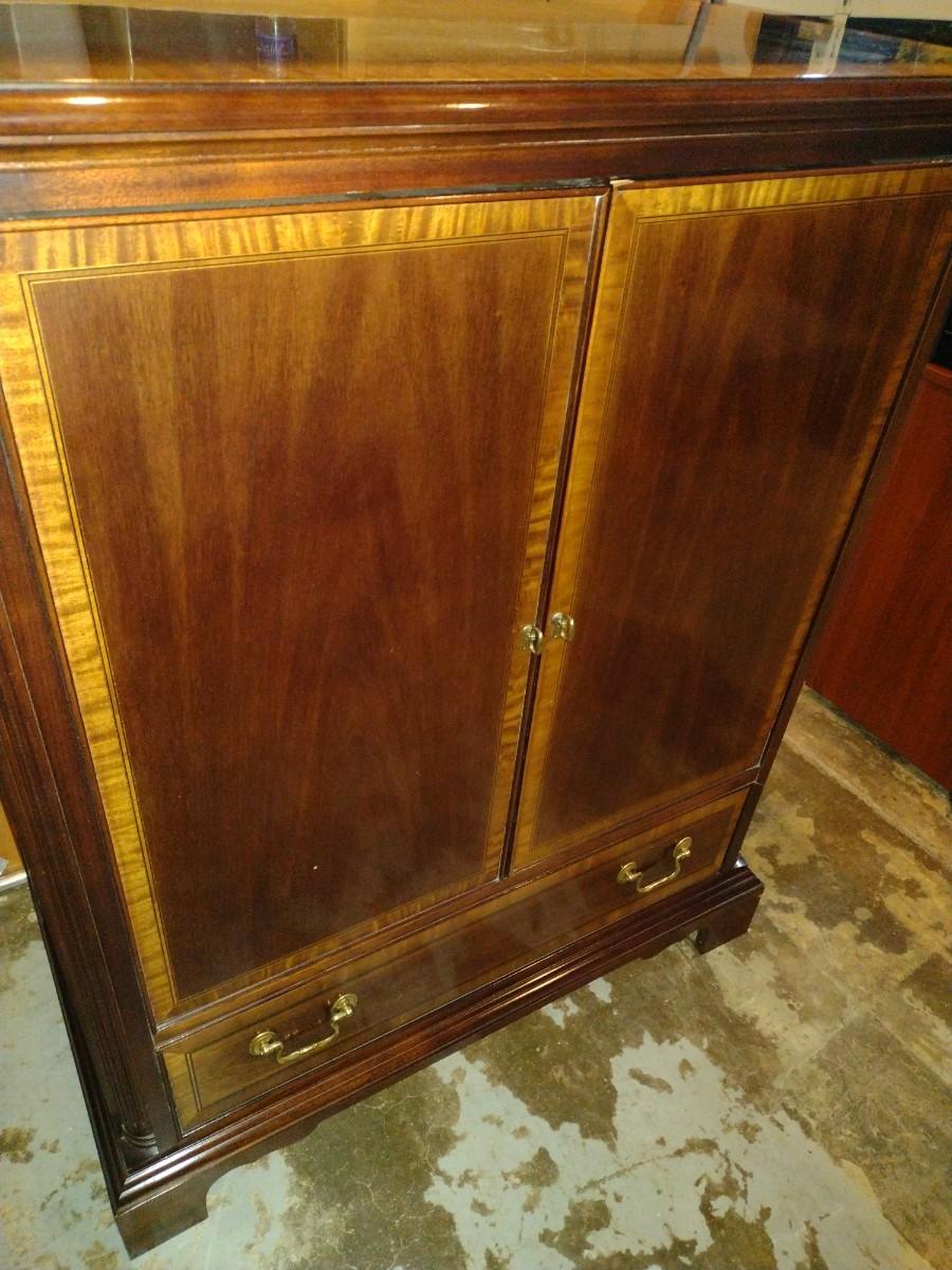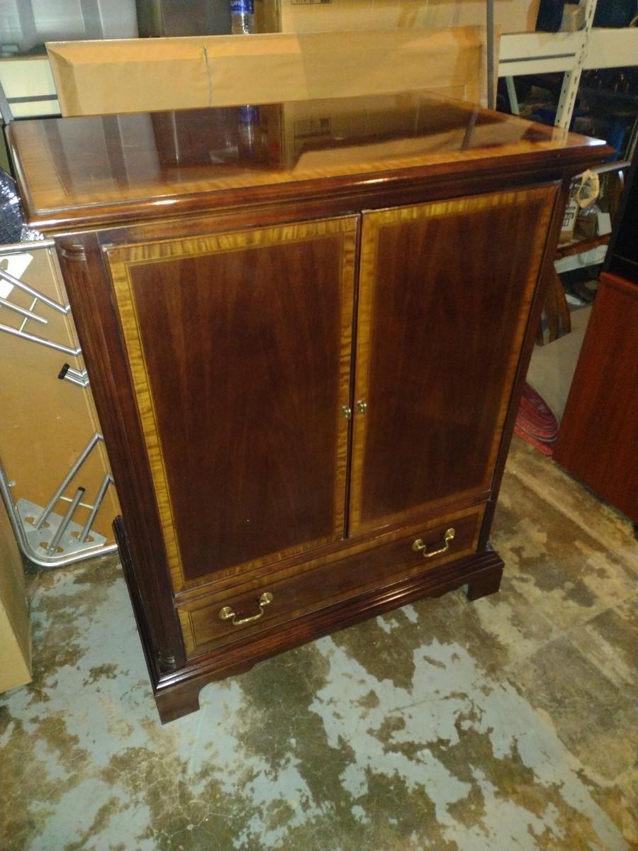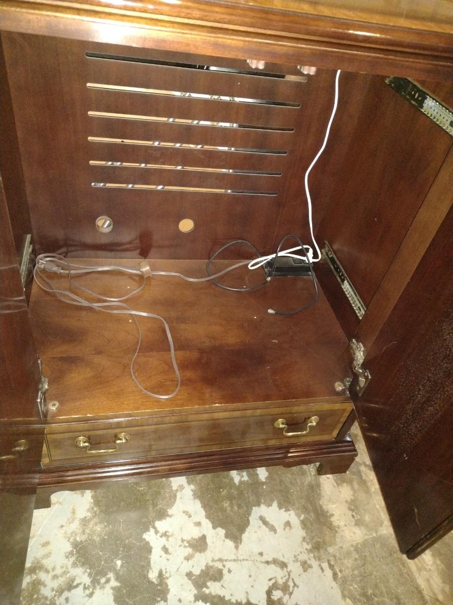 Vintage Walnut Finish with Inlay Radio Cabinet Transitioned to Media Console