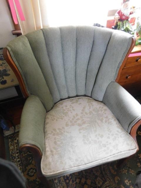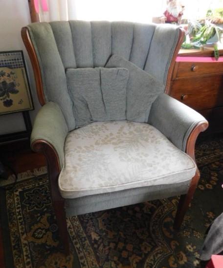 Vintage Walnut Frame Upholstered Tufted Back Chair