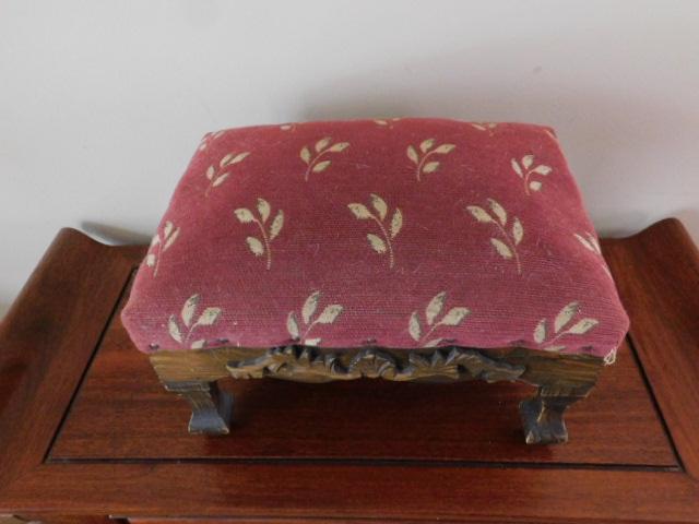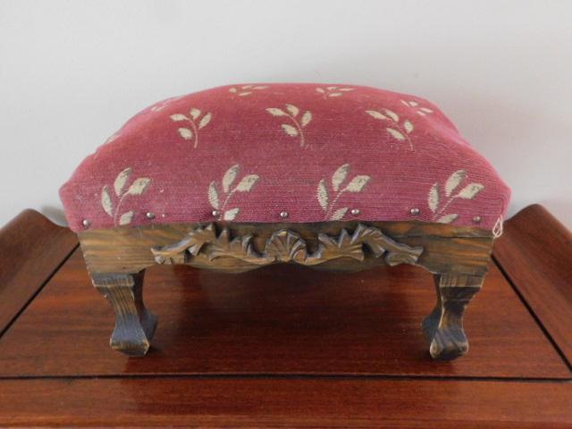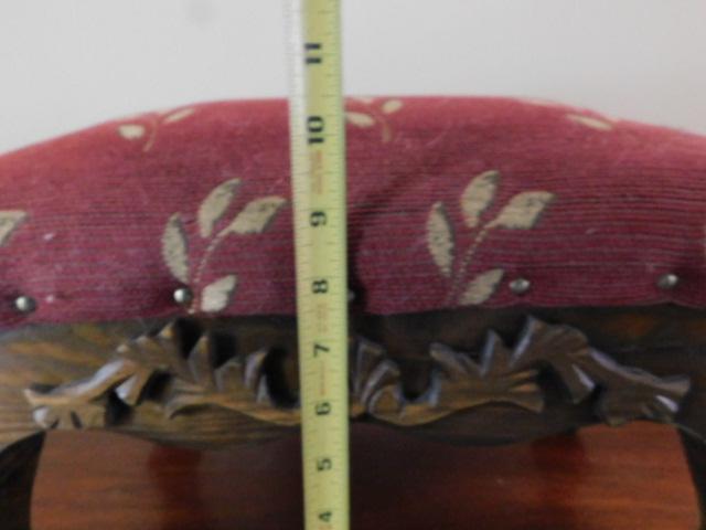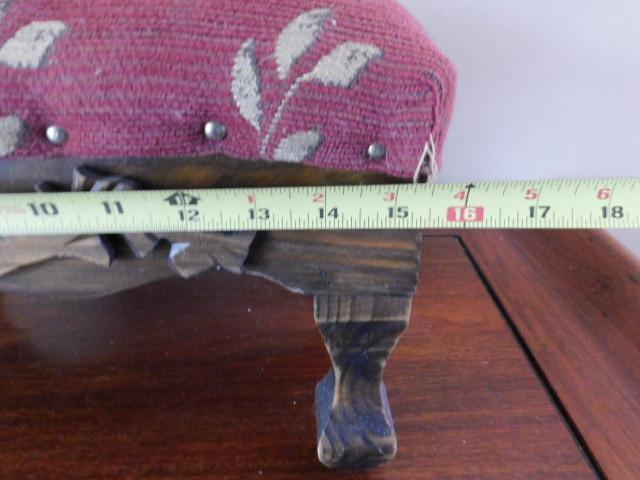 Vintage Walnut Framed Wood Carved Foot Stool 16"x12"x10"
