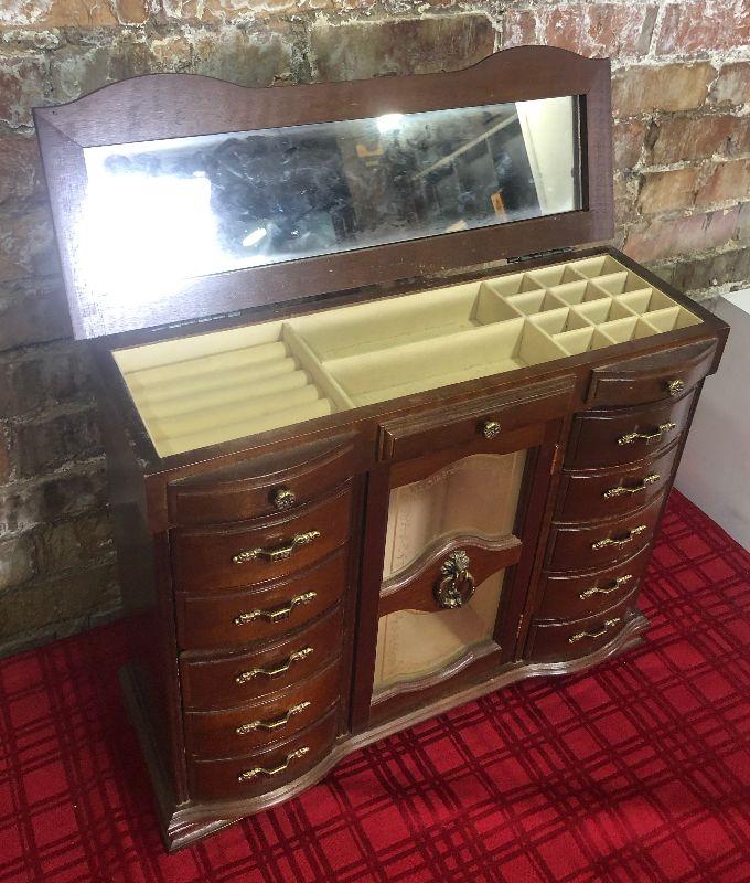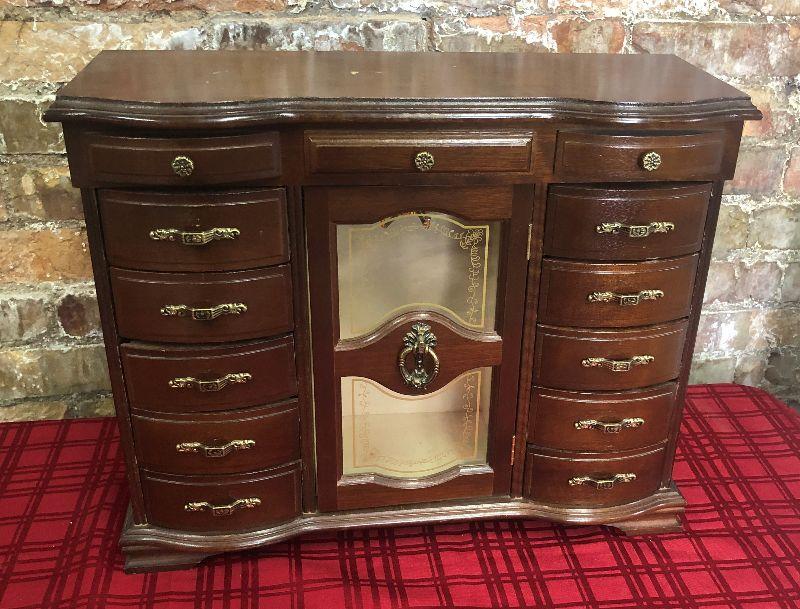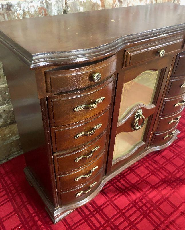 Here is a large 18 x 7 x 15" walnut chest or jewelry box...Musical...Lightly used condition...