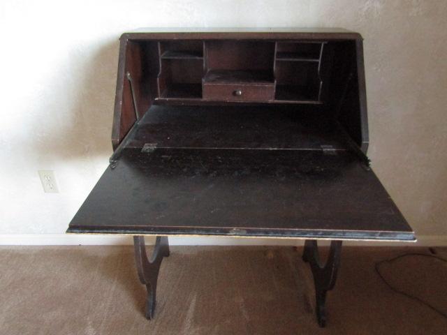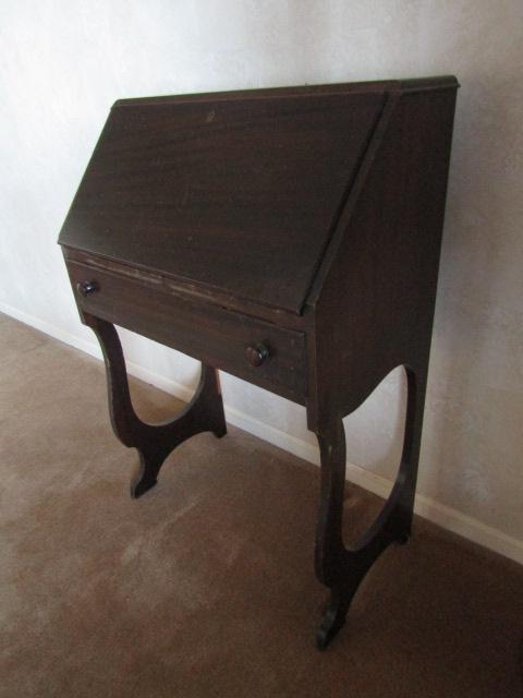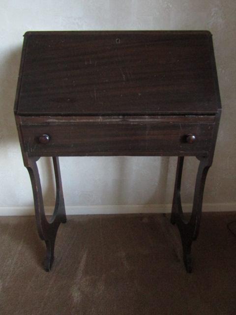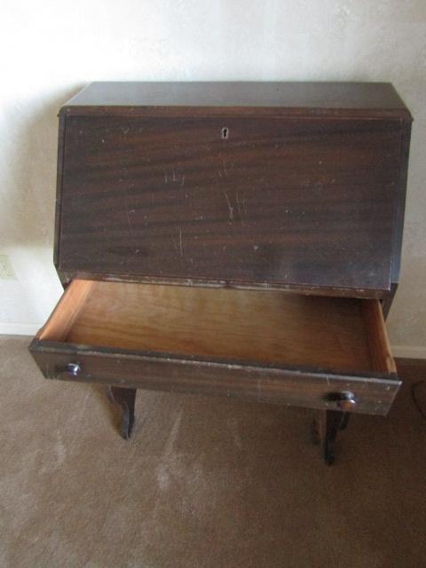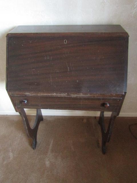 Vintage Walnut Secretary Desk 26"x14"x38" expect wear and scratches