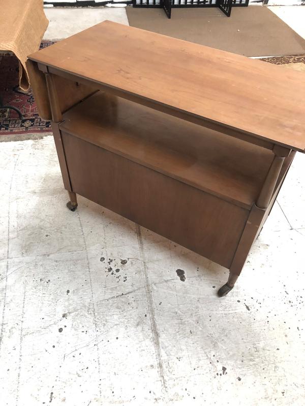Measures 38" closed 61" open, 19" deep and 32" tall. Good condition but finish shows wear.