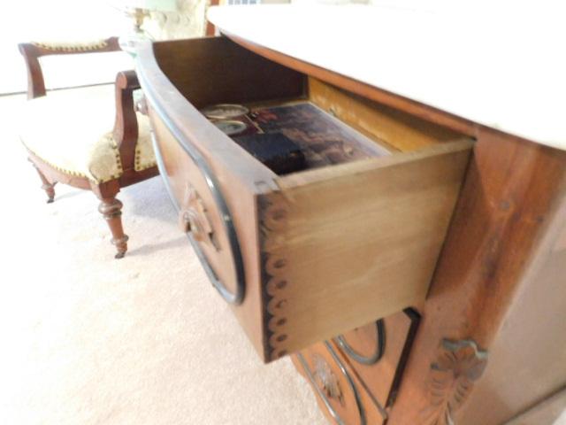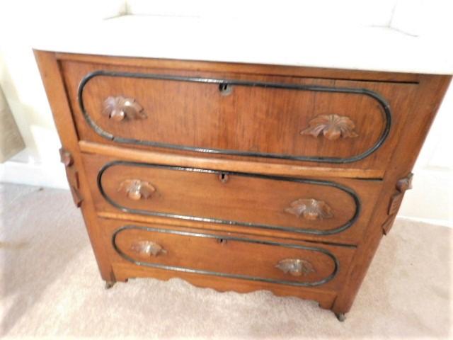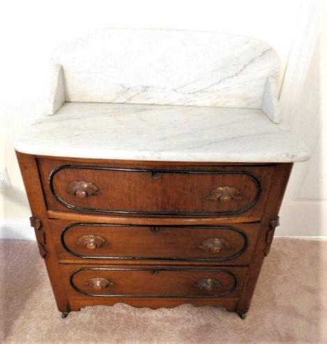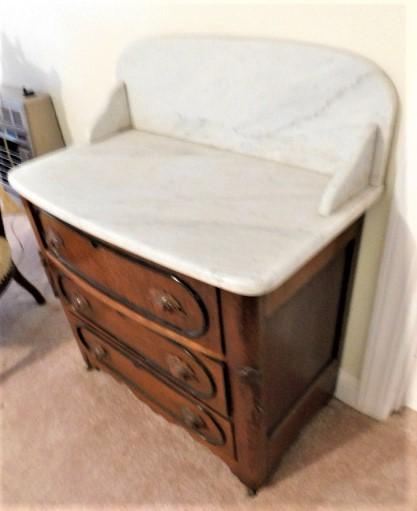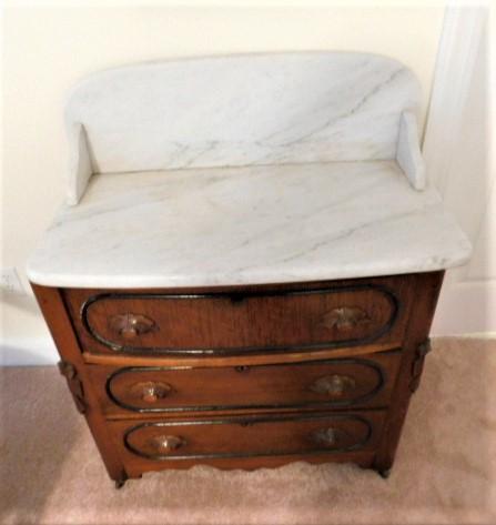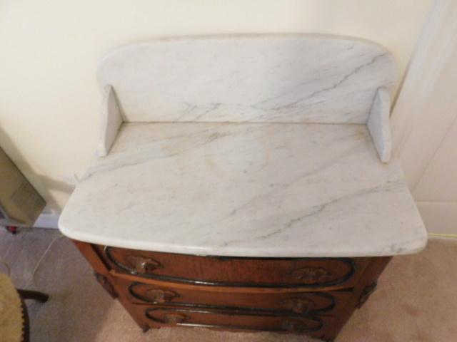Vintage Walnut Triple Drawer Sink with Marble Top --downstairs item