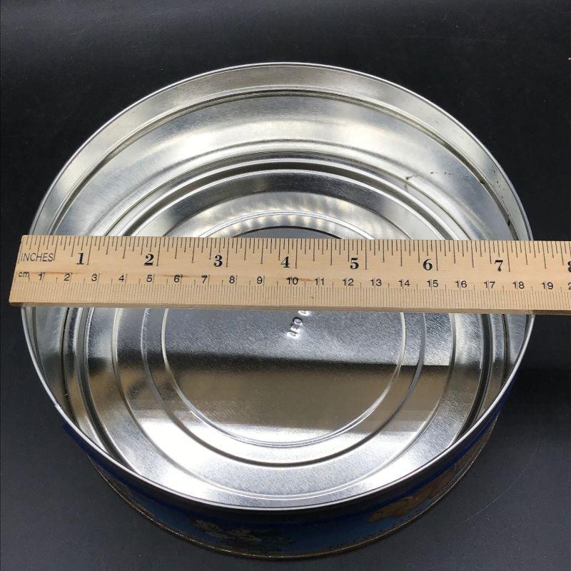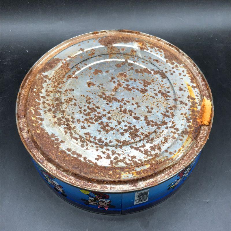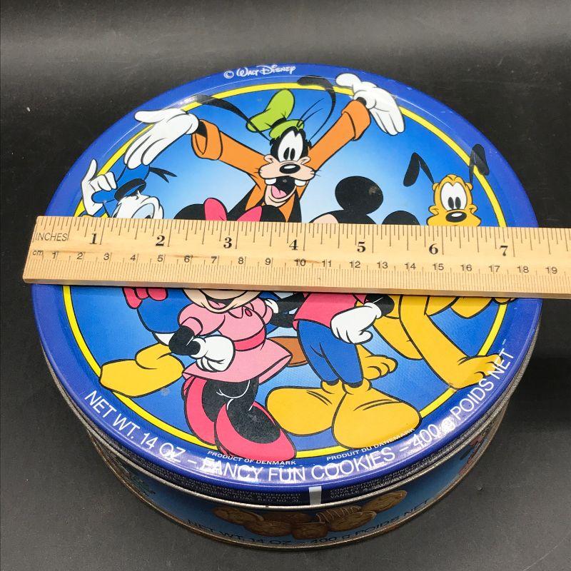 Vintage Walt Disney Mickey & Friends cookie tin. Round tin held "fancy fun cookies". Almost 8" across. Bottom is rusty but the images look great.