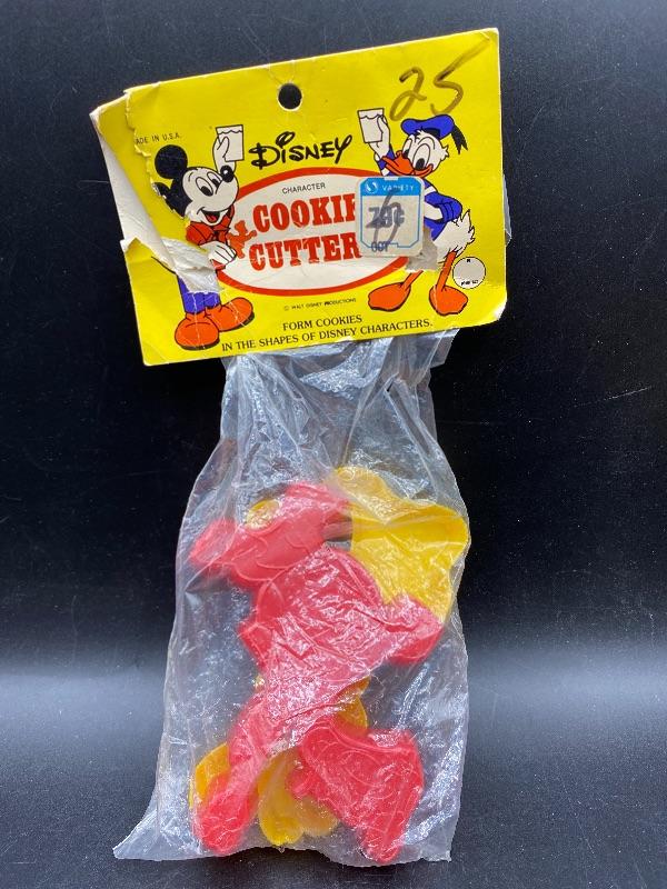 Vintage Walt Disney plastic cookie cutter pair. 5" cookie cutter of Donald Duck and Pluto. Still in original packaging but packaging is worn.