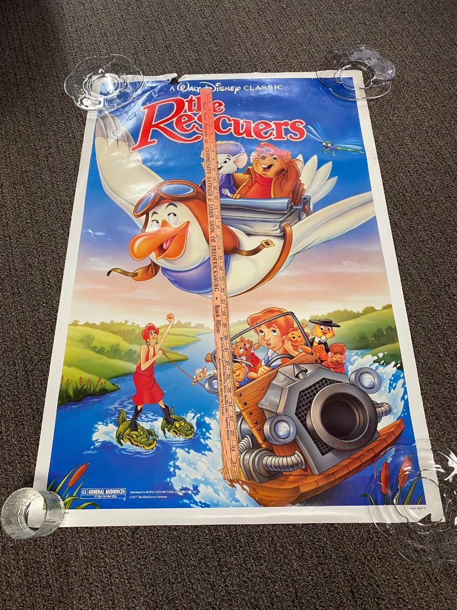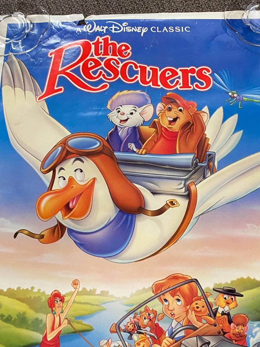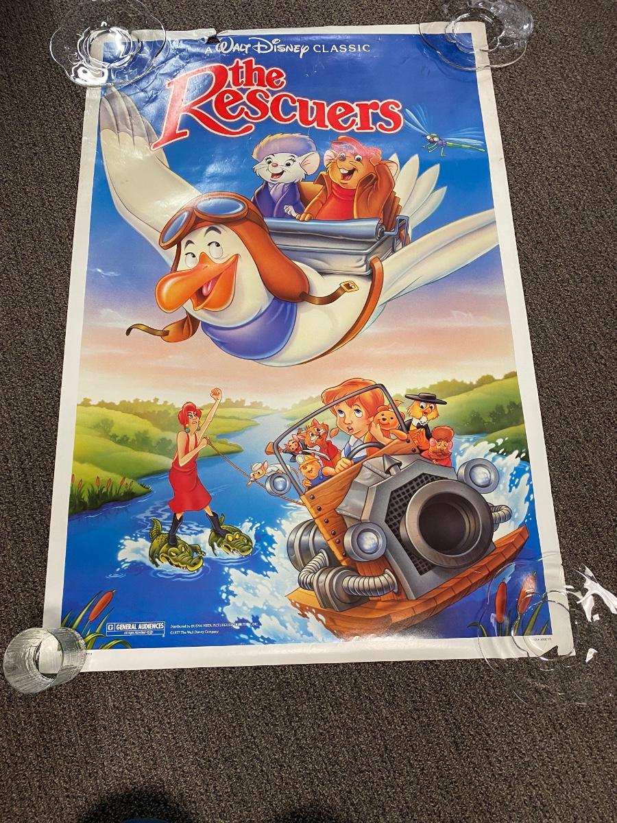 Vintage Walt Disney The Rescuers one sheet movie poster. Has the date as 1977. worn edges and slight damage at the top left corner.
