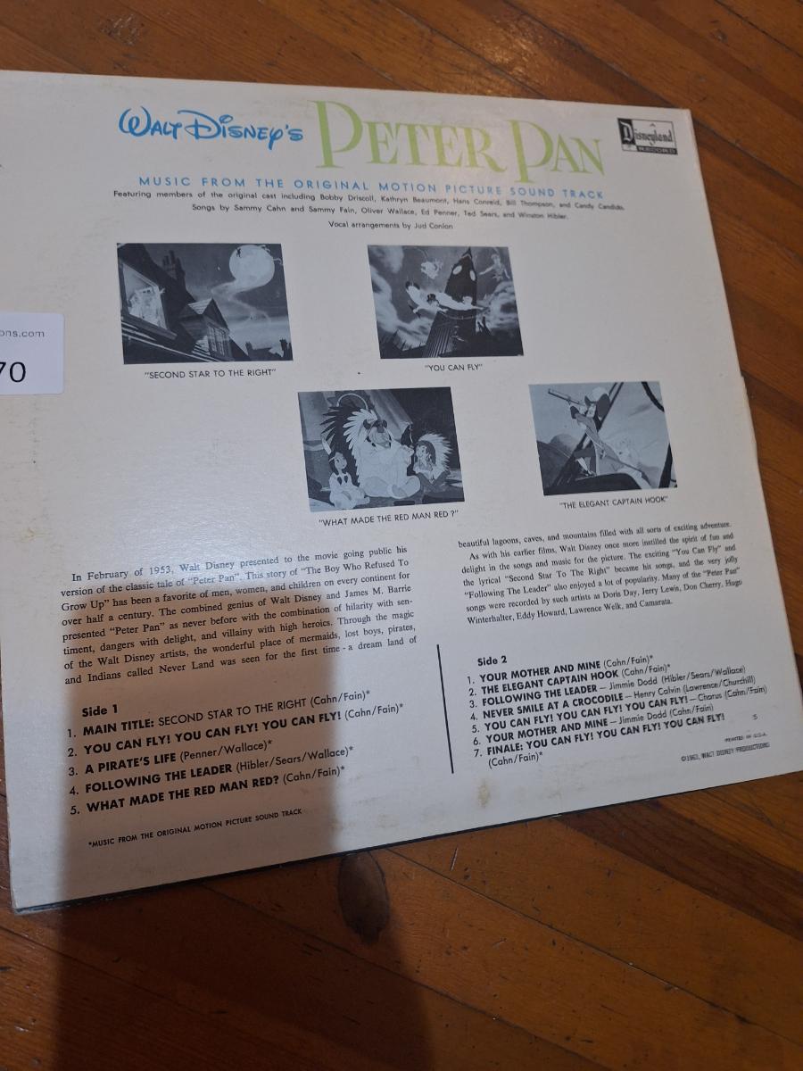 vintage Walt Disney's Peter Pan soundtrack vinyl LP record