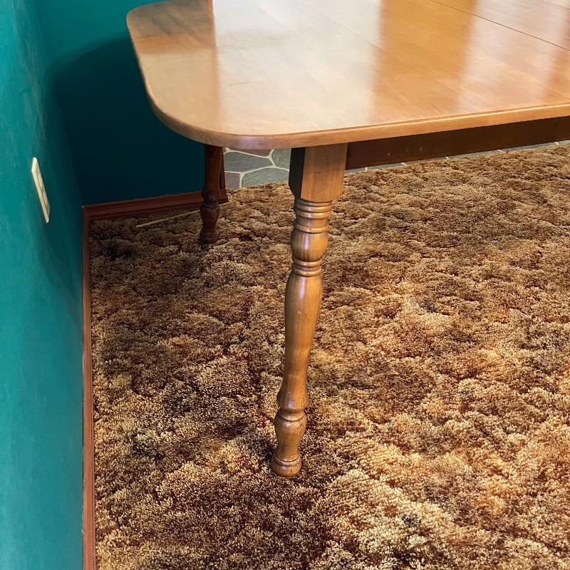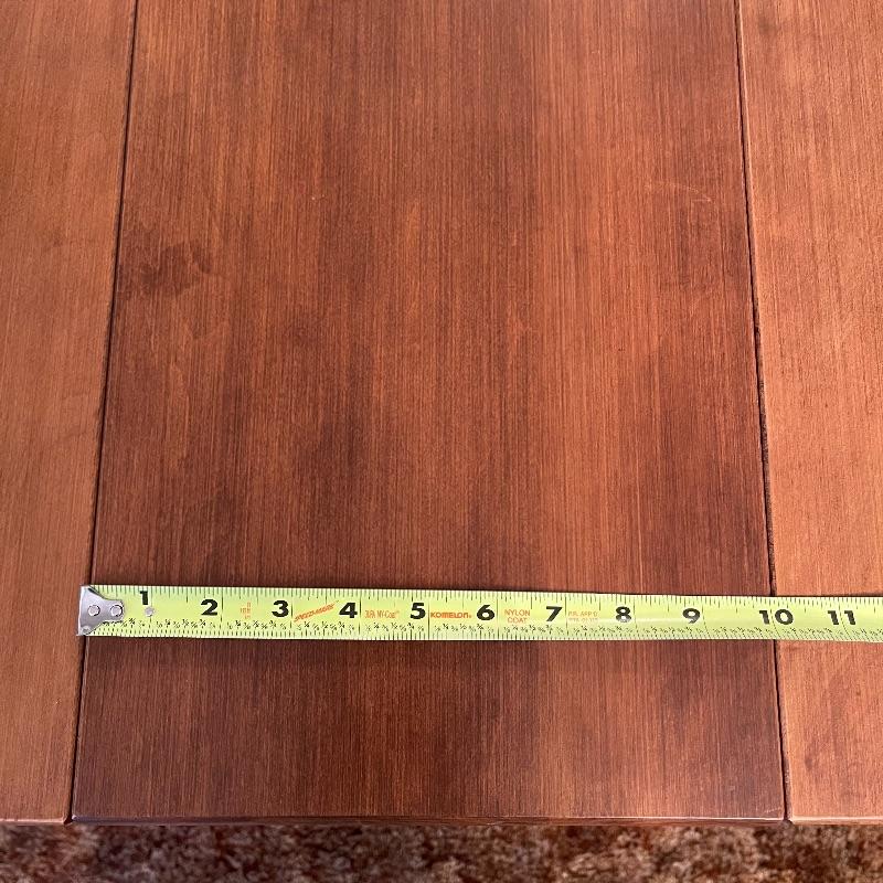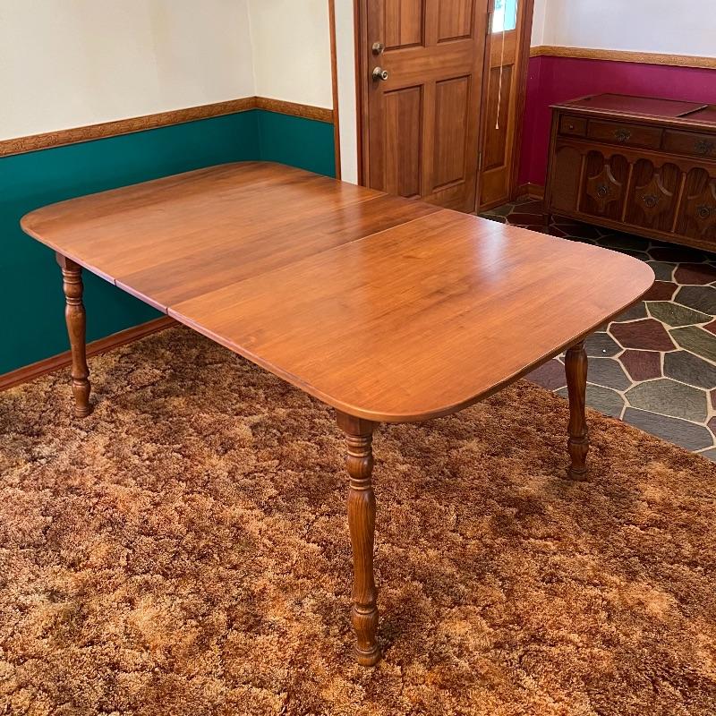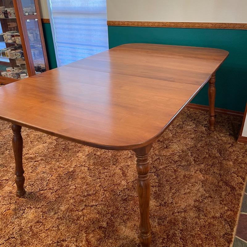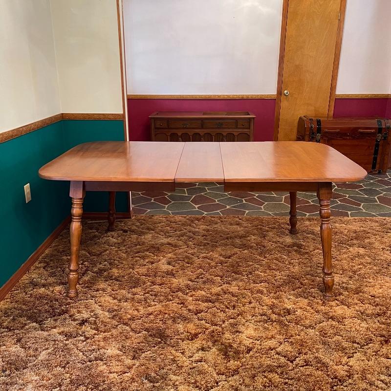 Solid Hard Rock Maple. Has a 10” leaf. Spindle legs. Seats 4-8.