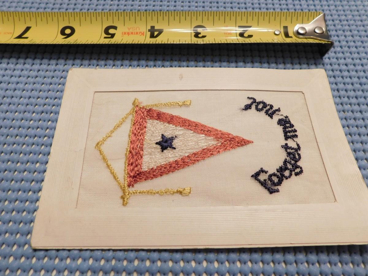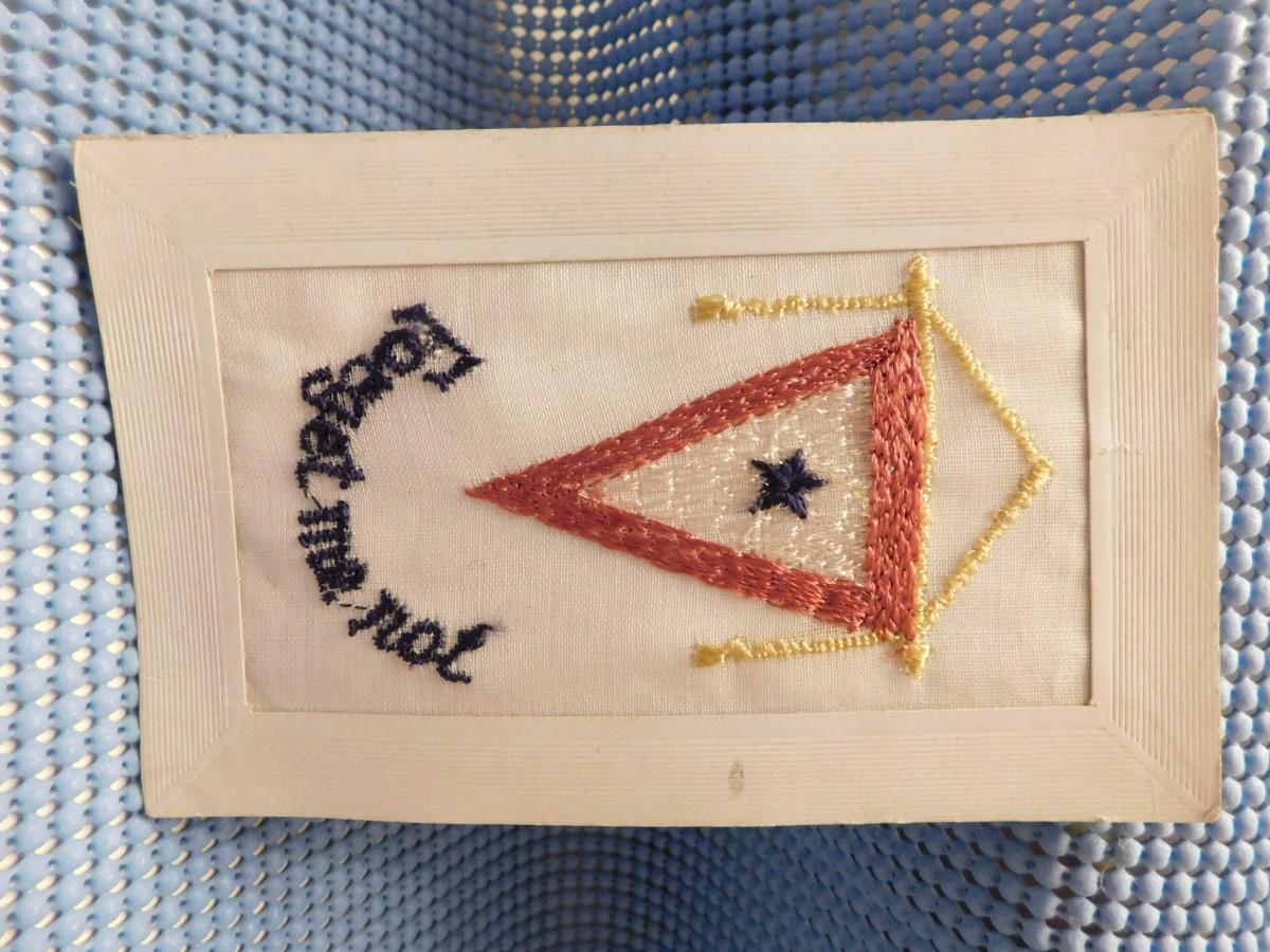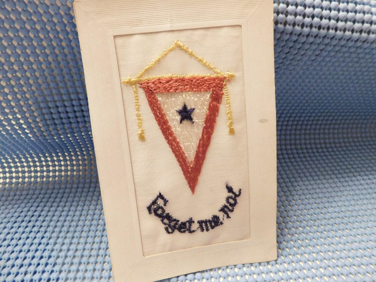 Vintage War Time Embroidered One Son In Service Postcard Forget Me Not