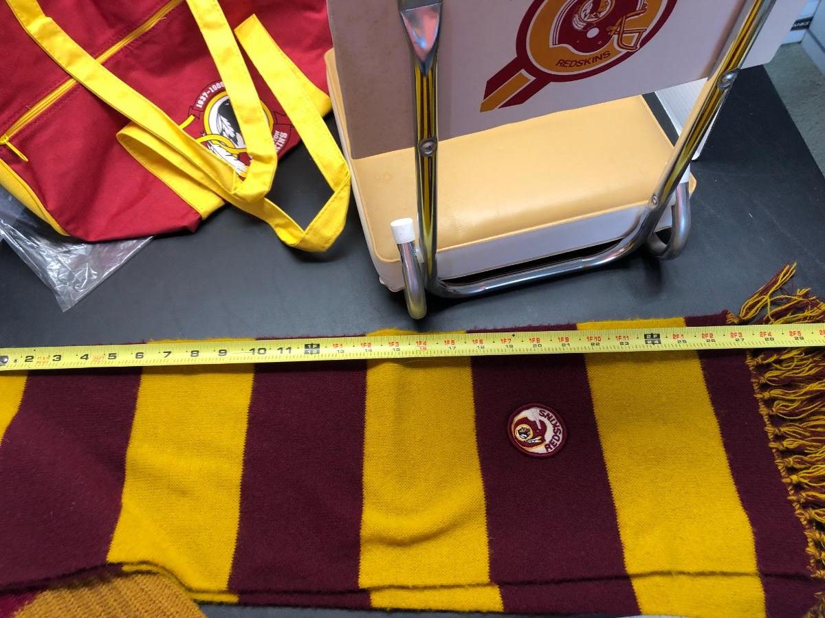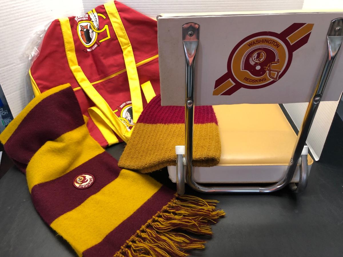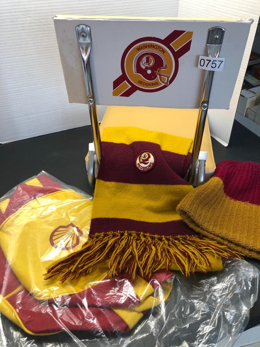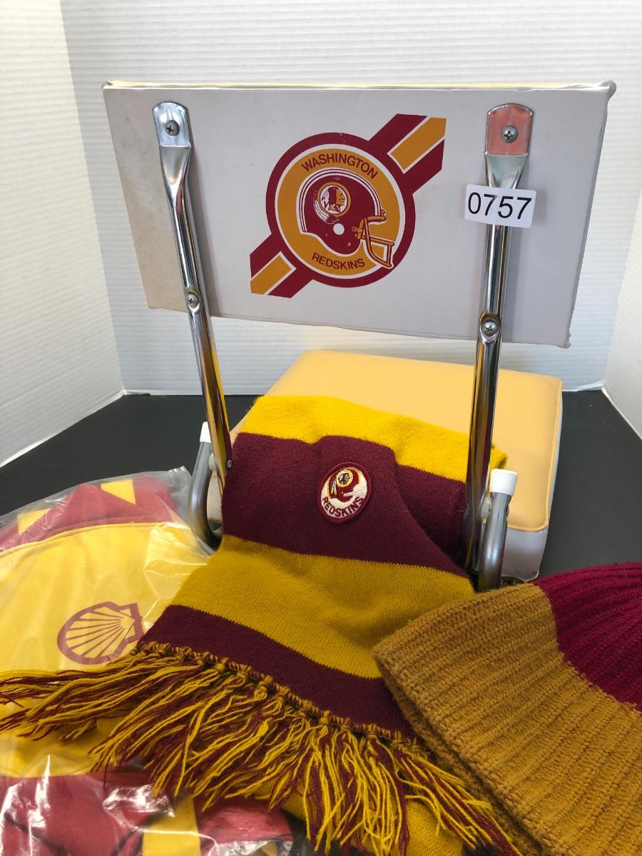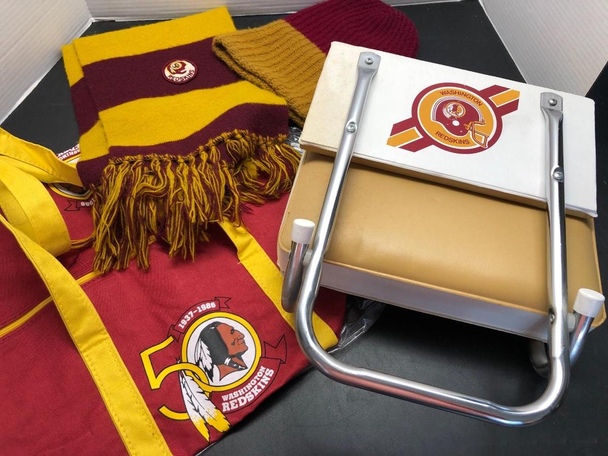 VTG Washington Redskins Stadium Bleacher Seat, Scarf, Hat & Shell Redskin Duffle/Tote Bag Lot #0757