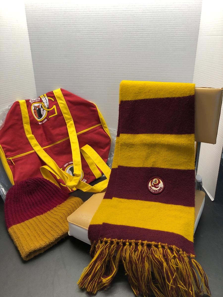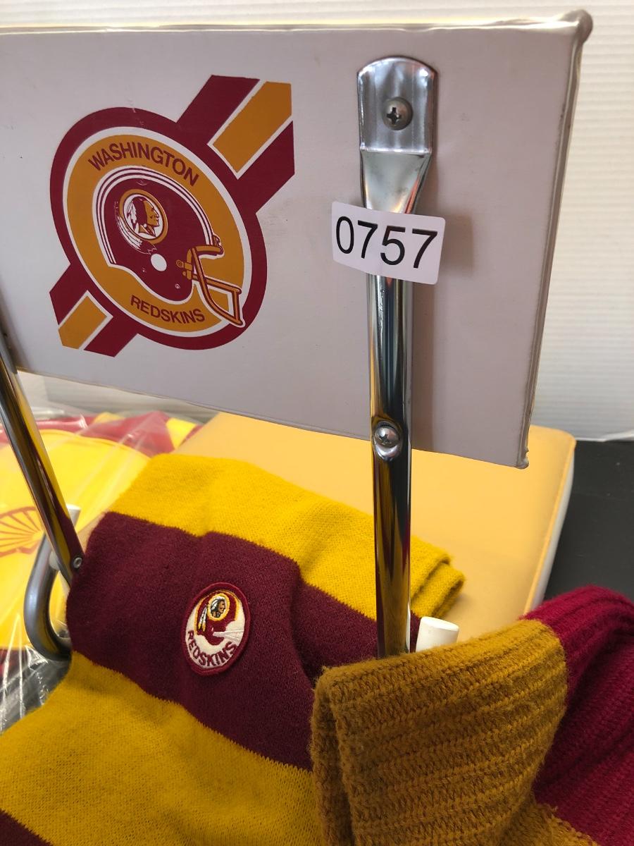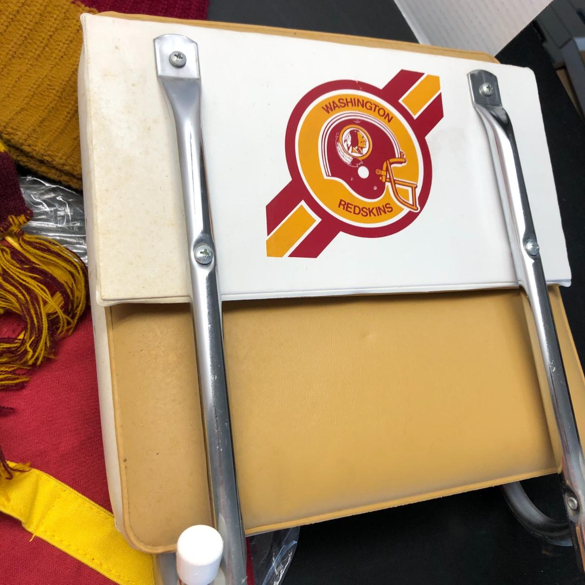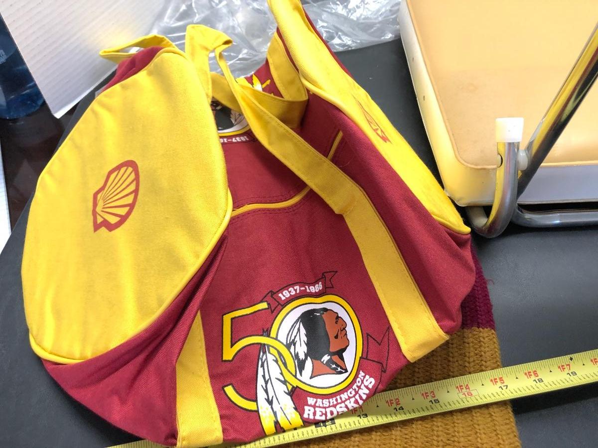 VTG Washington Redskins Stadium Bleacher Seat, Scarf, Hat & Shell Redskin Duffle/Tote Bag Lot #0757