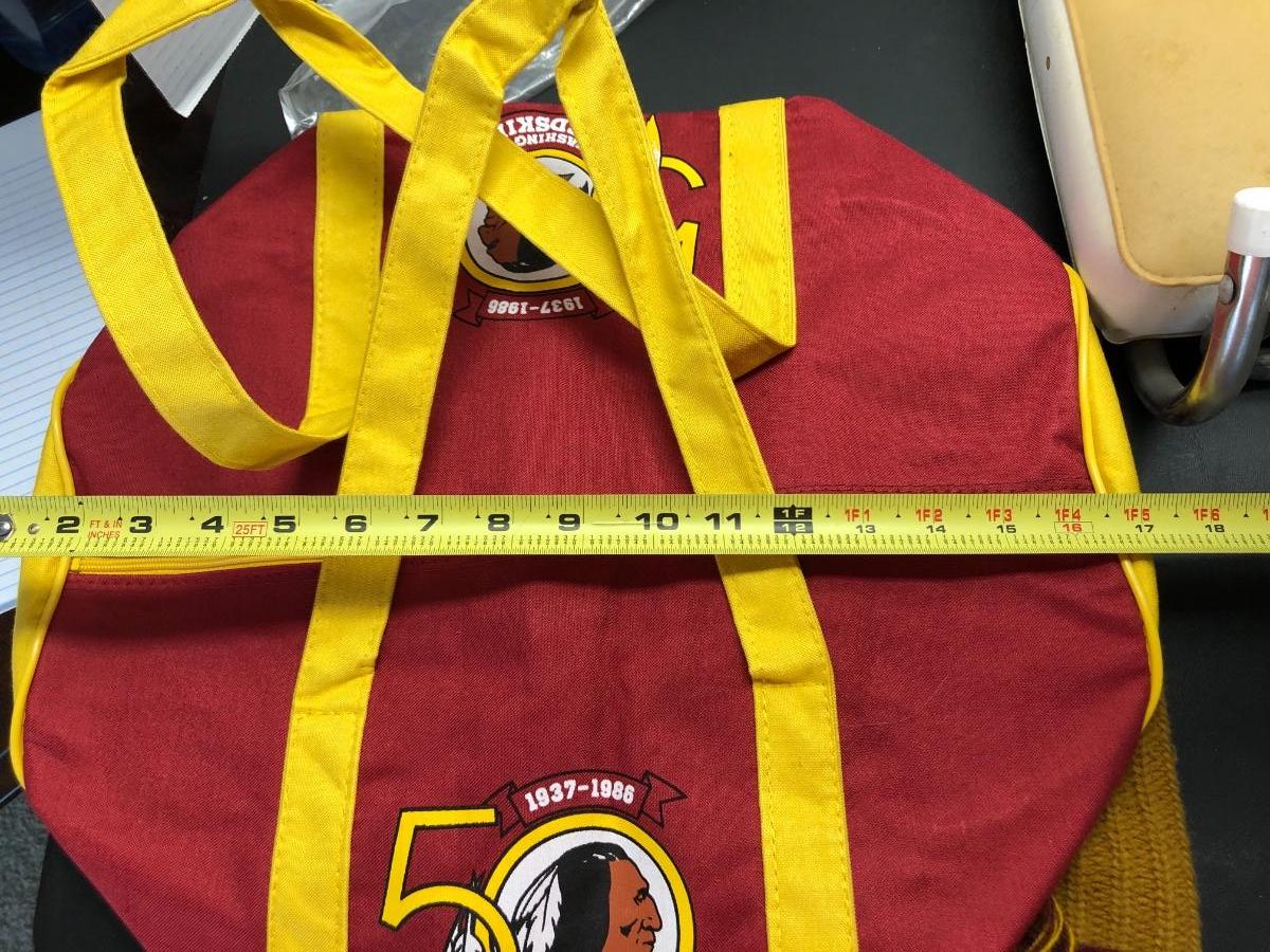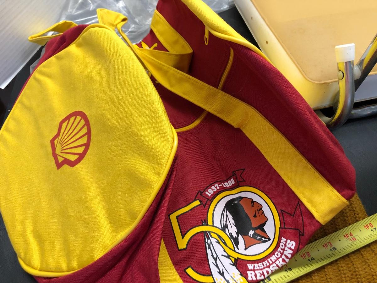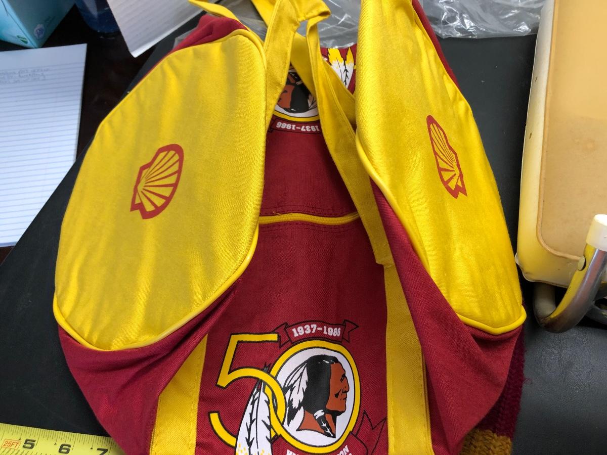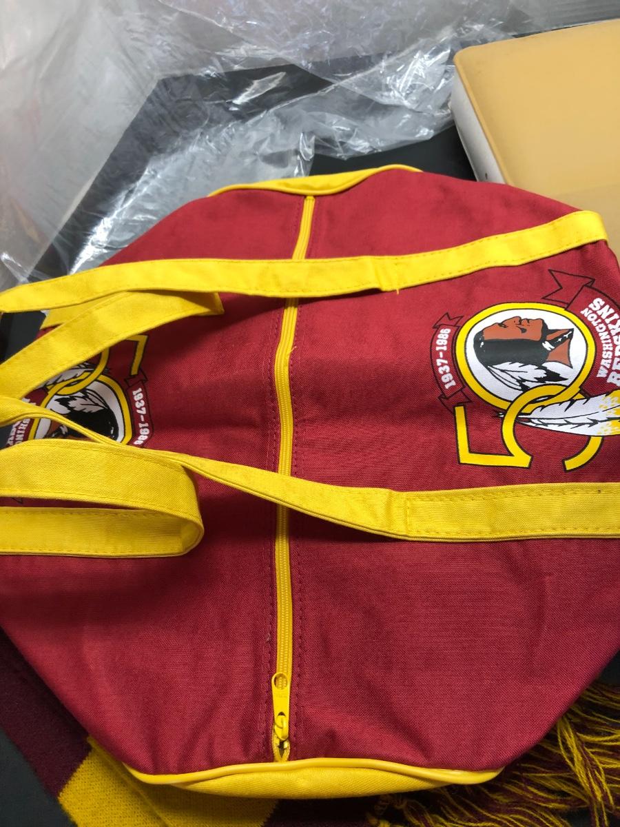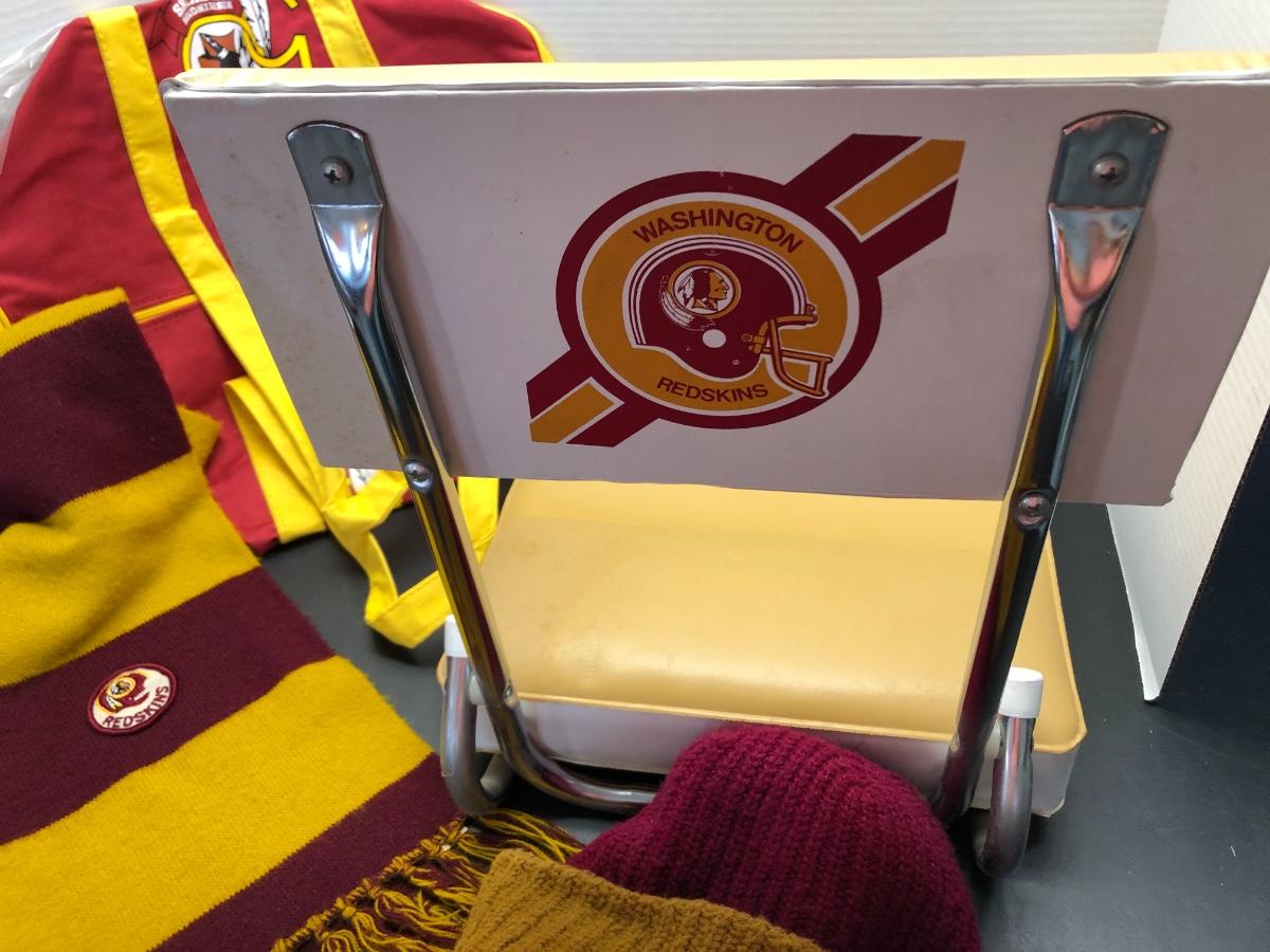 VTG Washington Redskins Stadium Bleacher Seat, Scarf, Hat & Shell Redskin Duffle/Tote Bag Lot #0757