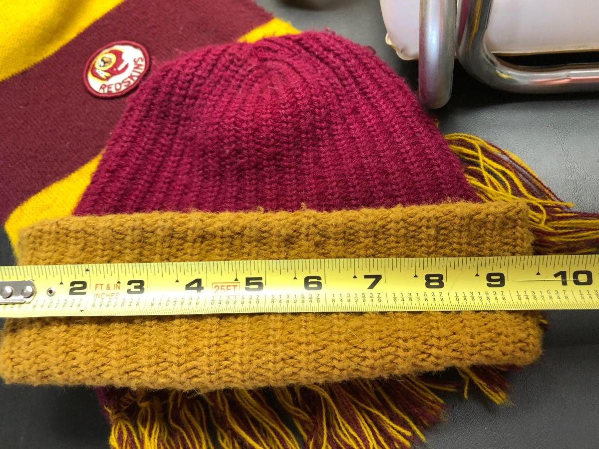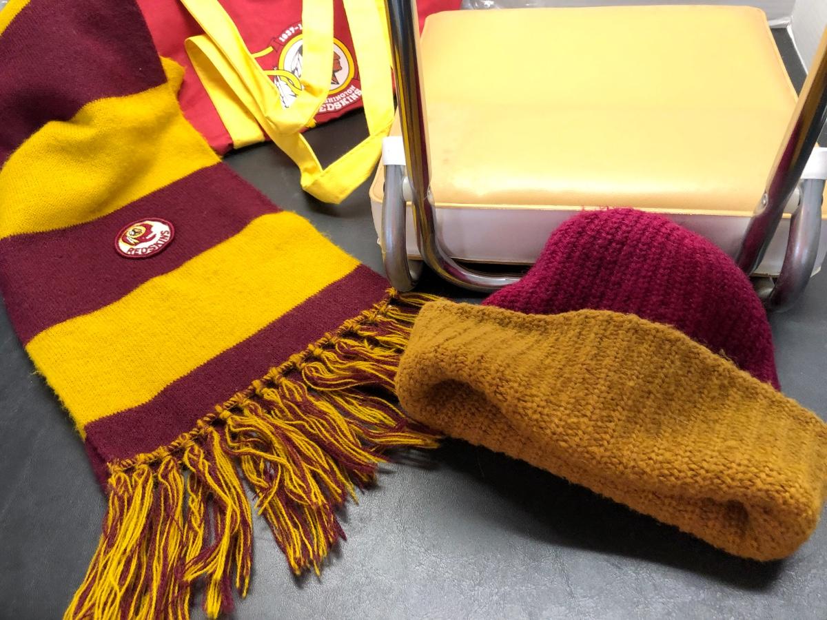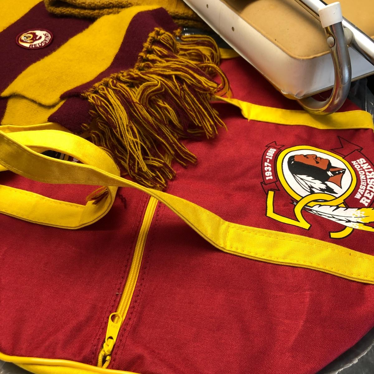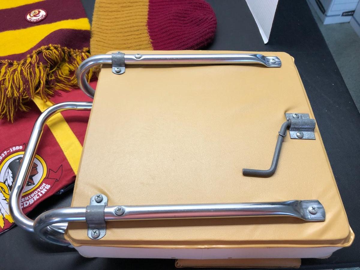 VTG Washington Redskins Stadium Bleacher Seat, Scarf, Hat & Shell Redskin Duffle/Tote Bag Lot #0757