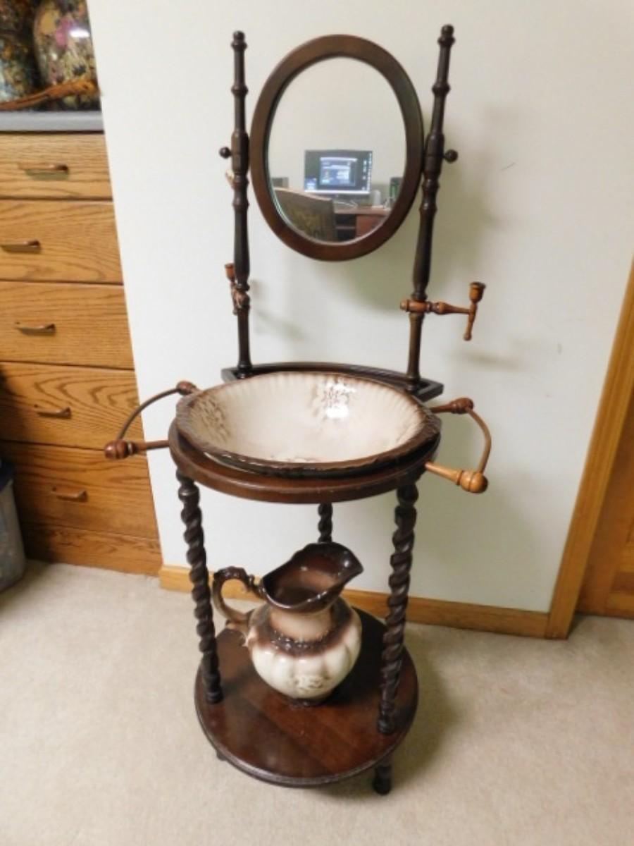 Vintage Washstand with Mirror and Wash Basin with Pitcher