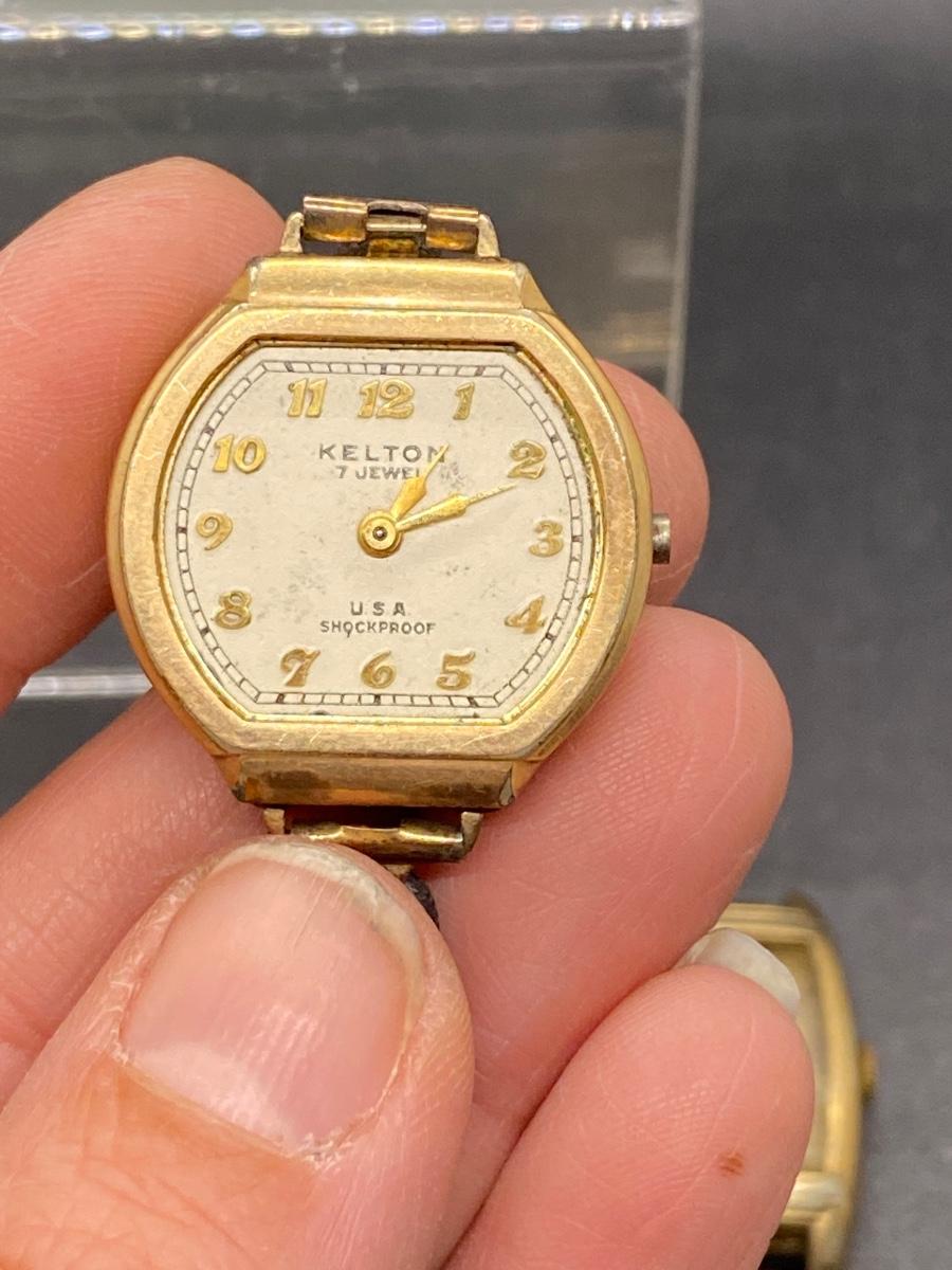 Vintage Watch Faces Elgin Kelton for Parts or Repair. The Elgin does wind up and seems to work, not sure how well it keeps time.