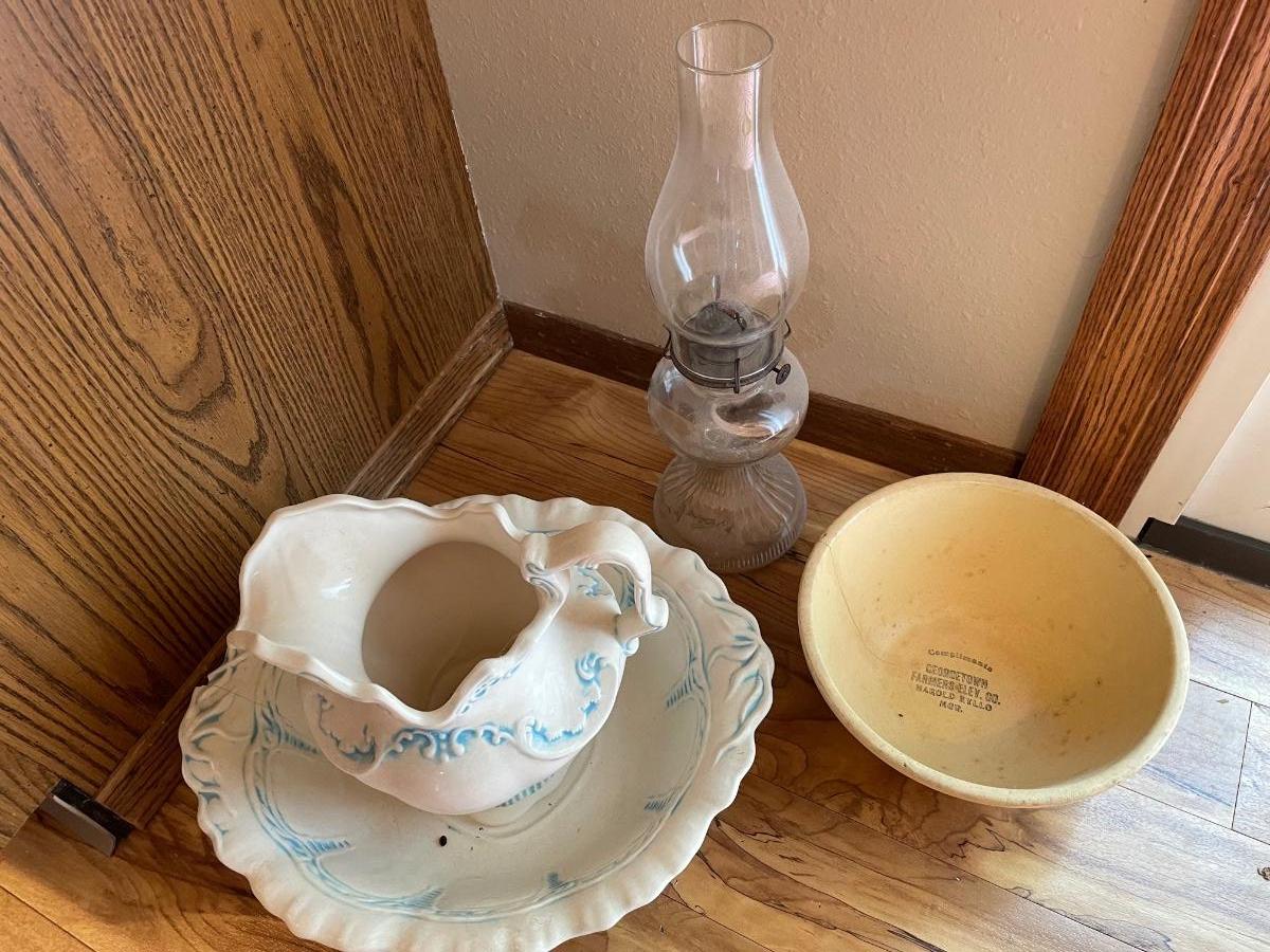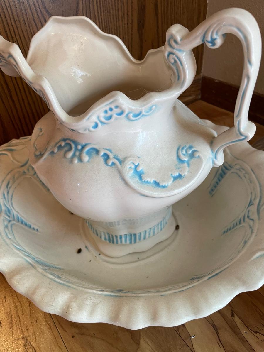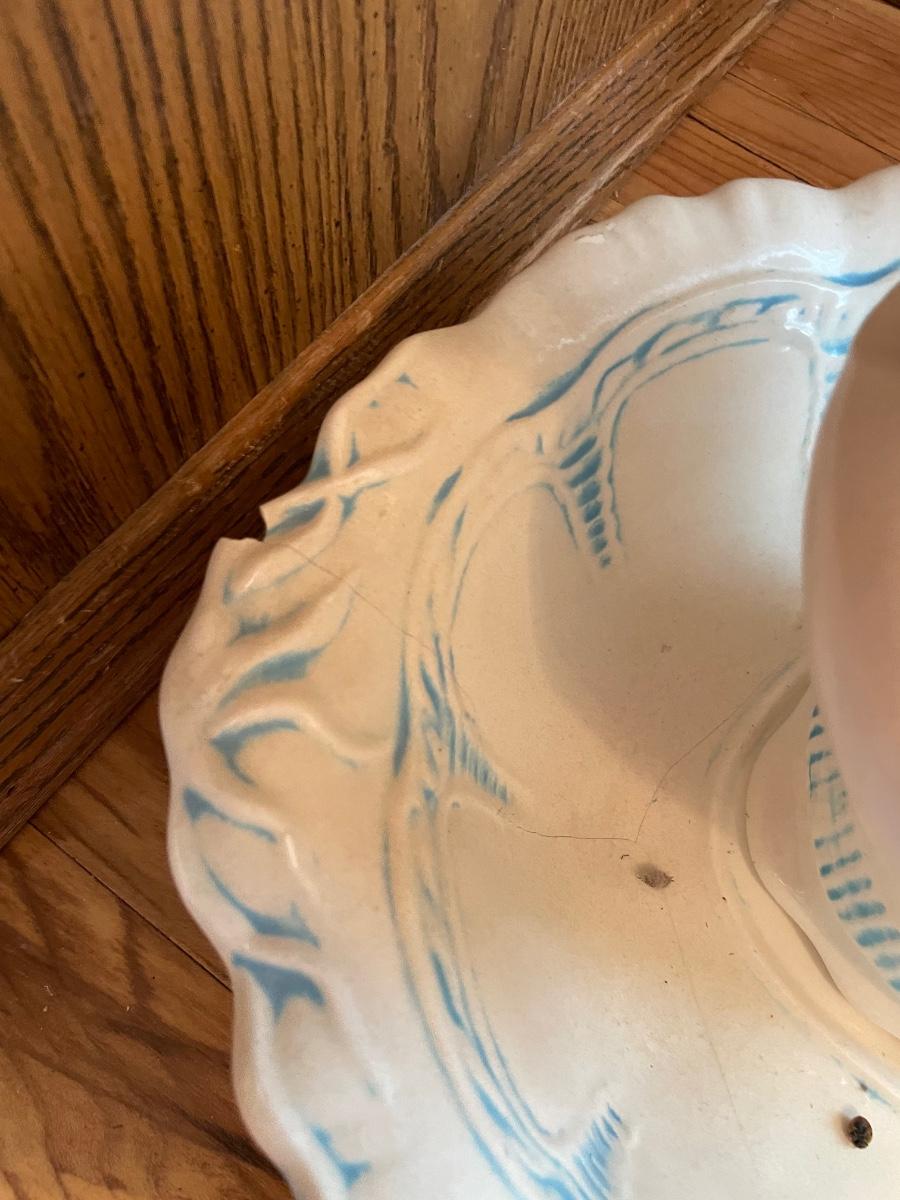 Bowl has a crack and water basin has a chip but still cool pieces to use as decor