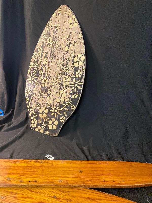 Vintage water skis and skim board Lot 1601