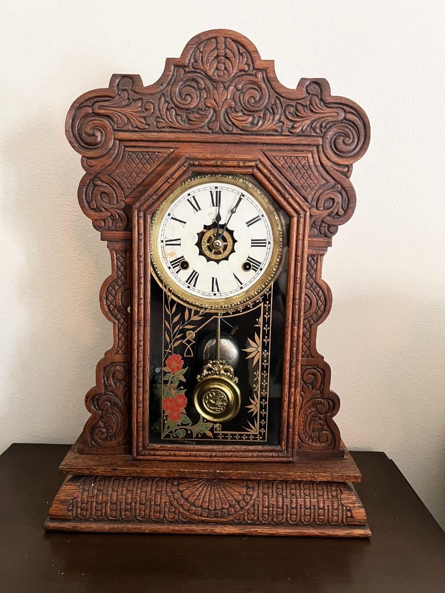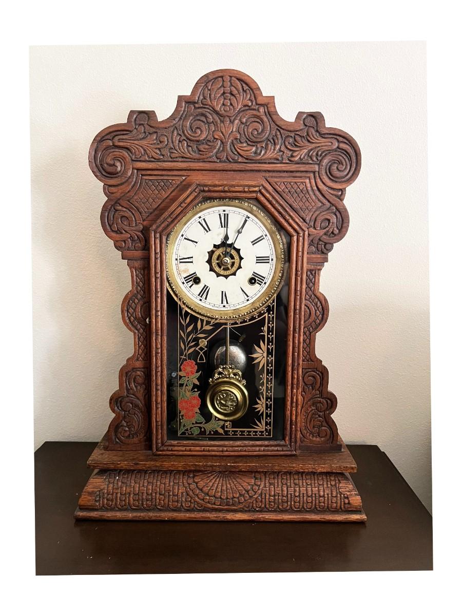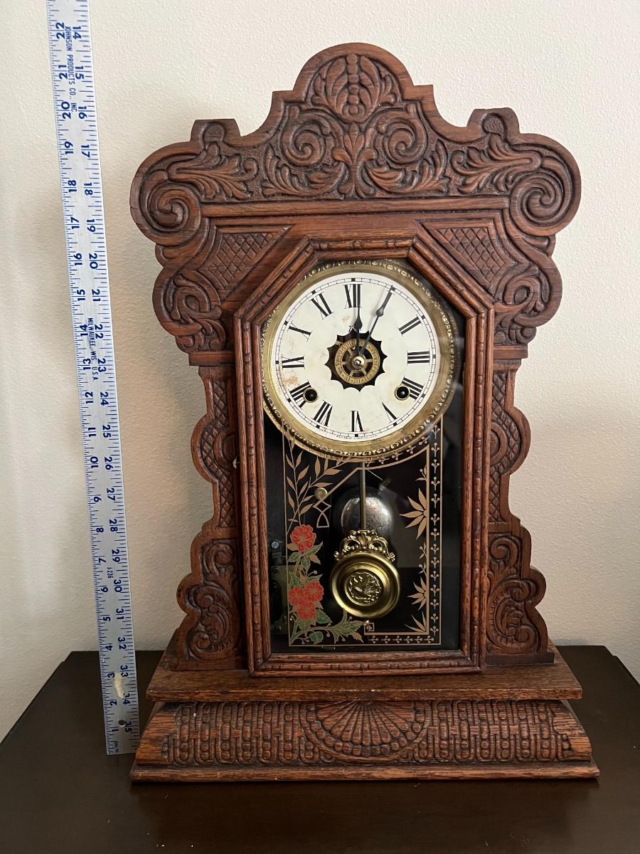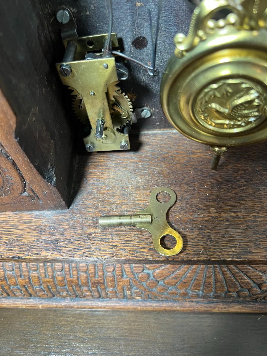 Vintage Waterbury Clock Co. Gothic Wooden Brass Glass  Mechanical Clock