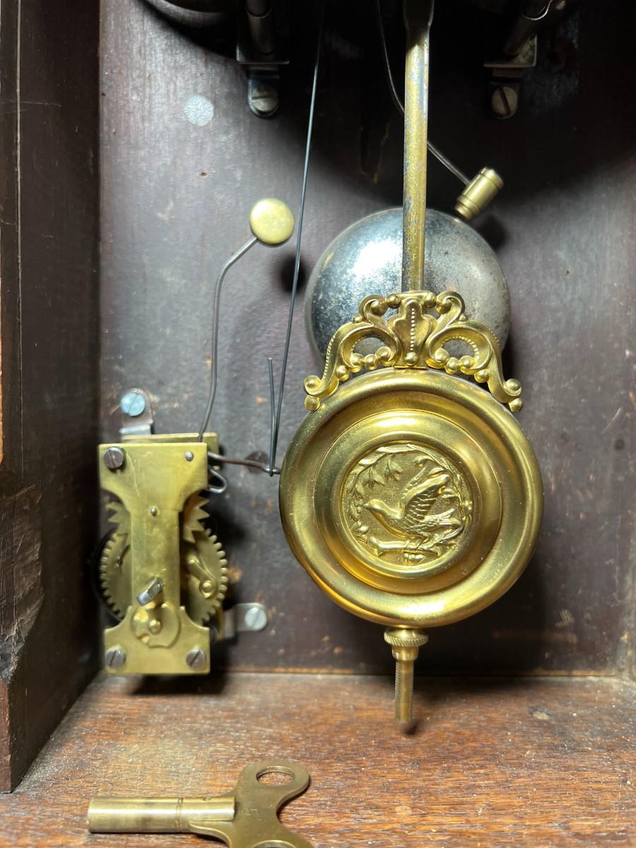 There is no significant damage to the clock and is in overall good collectible or displayable condition. Check pictures for more details and for sizing. Has been tested and works perfectly, comes with key.