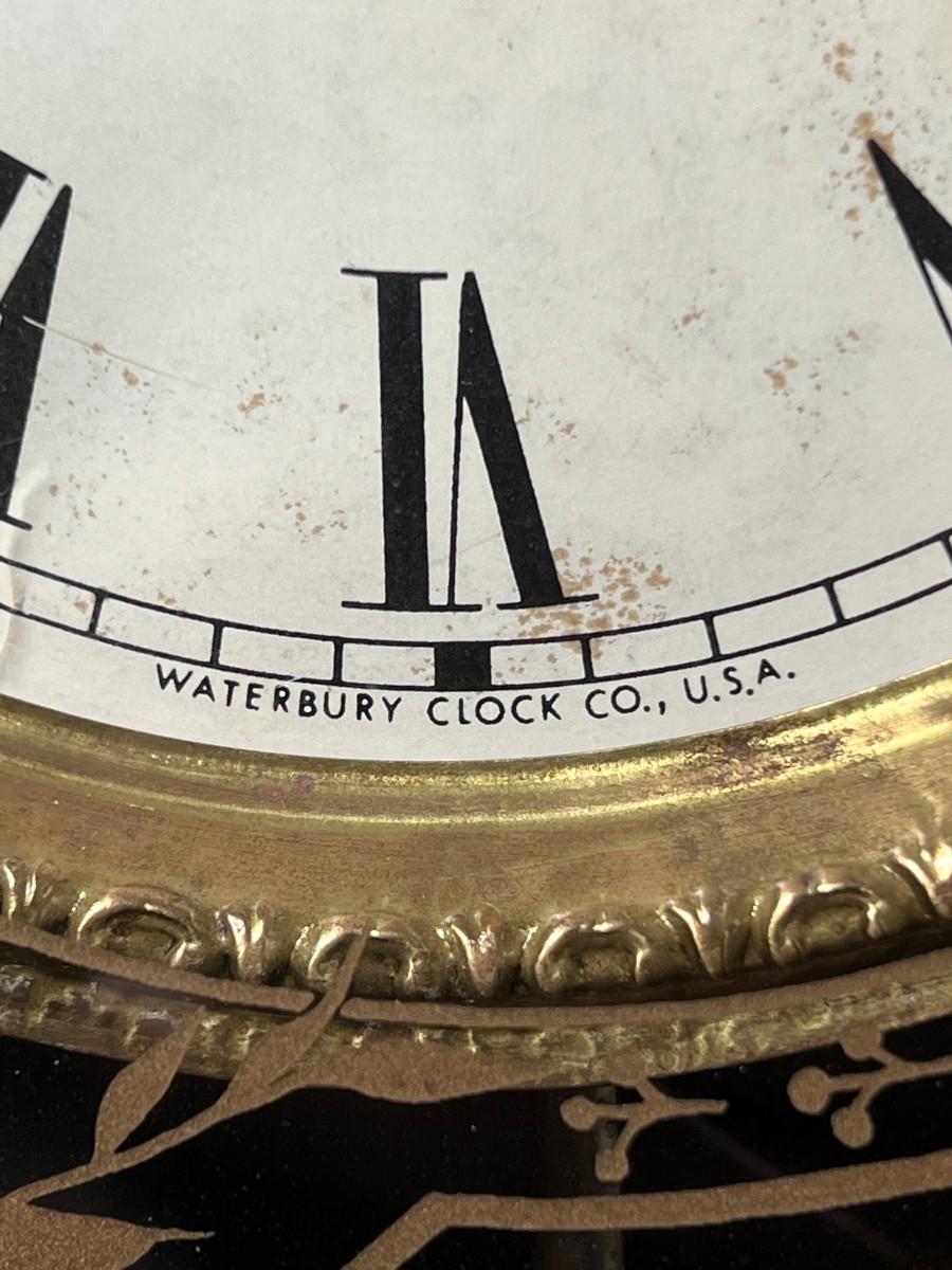 Vintage Waterbury Clock Co. Gothic Wooden Brass Glass Mechanical Clock