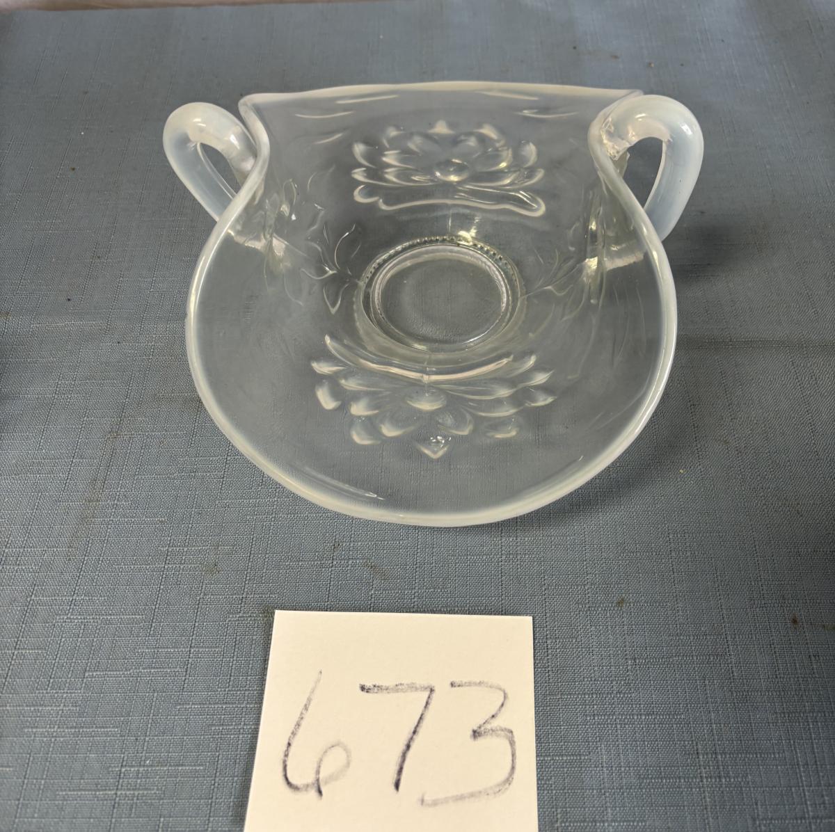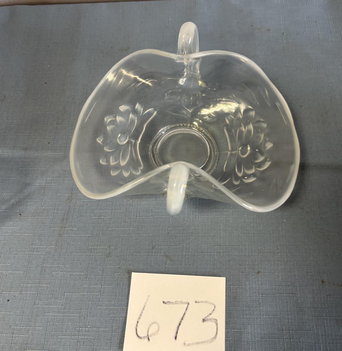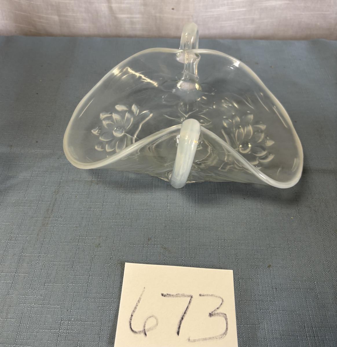 Vintage Waterlily and Cattail Opalescent Glass Bonbon Dish
