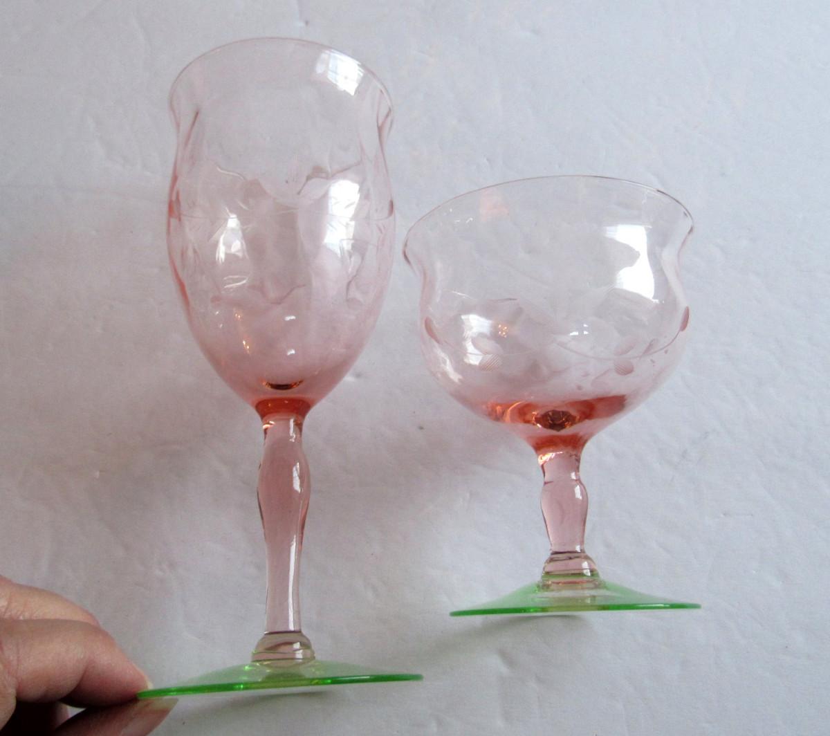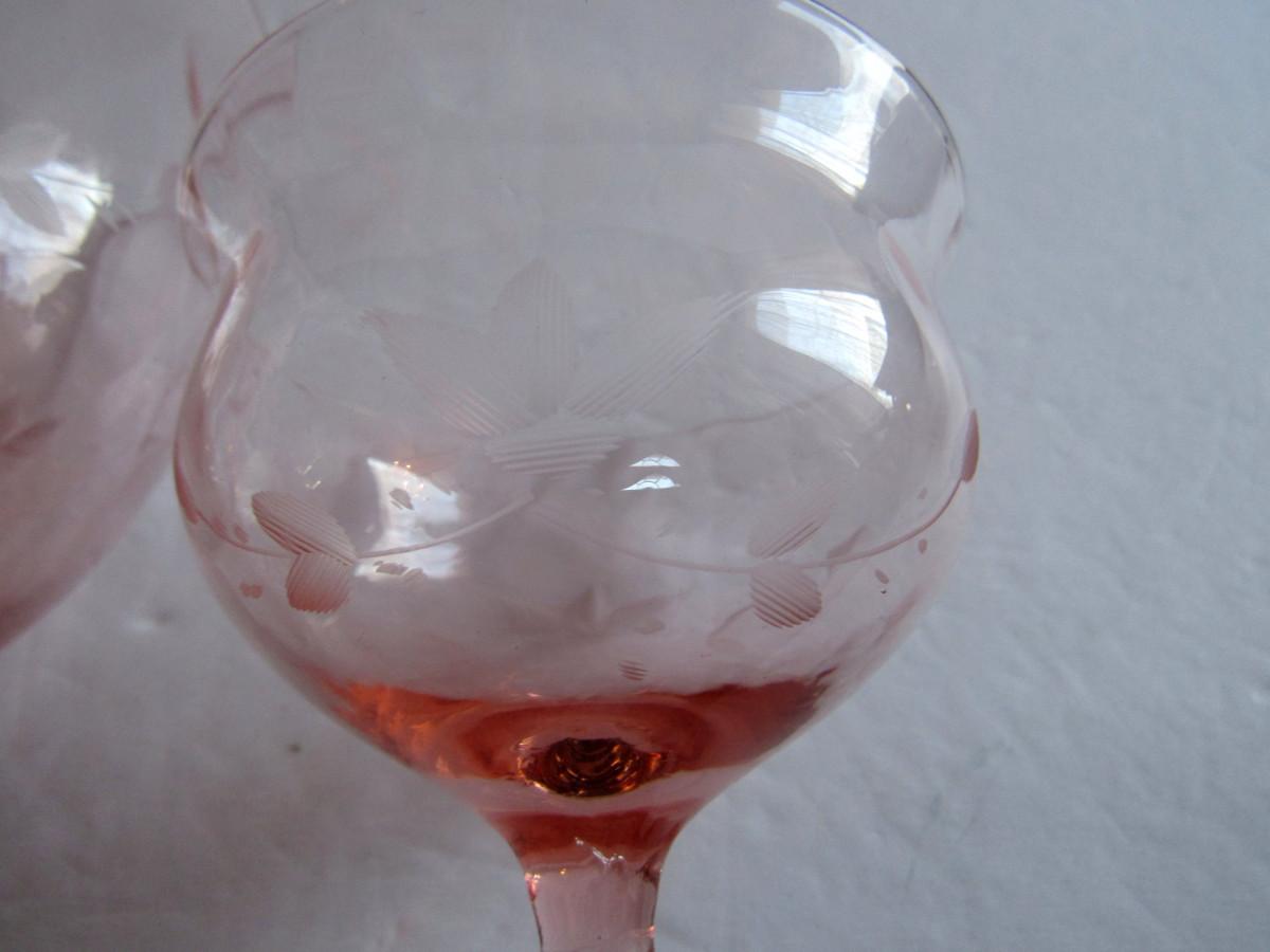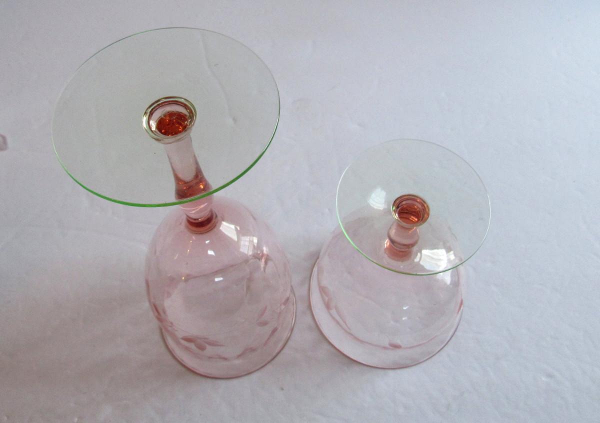 Nice shape. Nice little etching in the pink glass. Shipping is available at shipping cost plus $5 per box handling fee. See our terms for details.